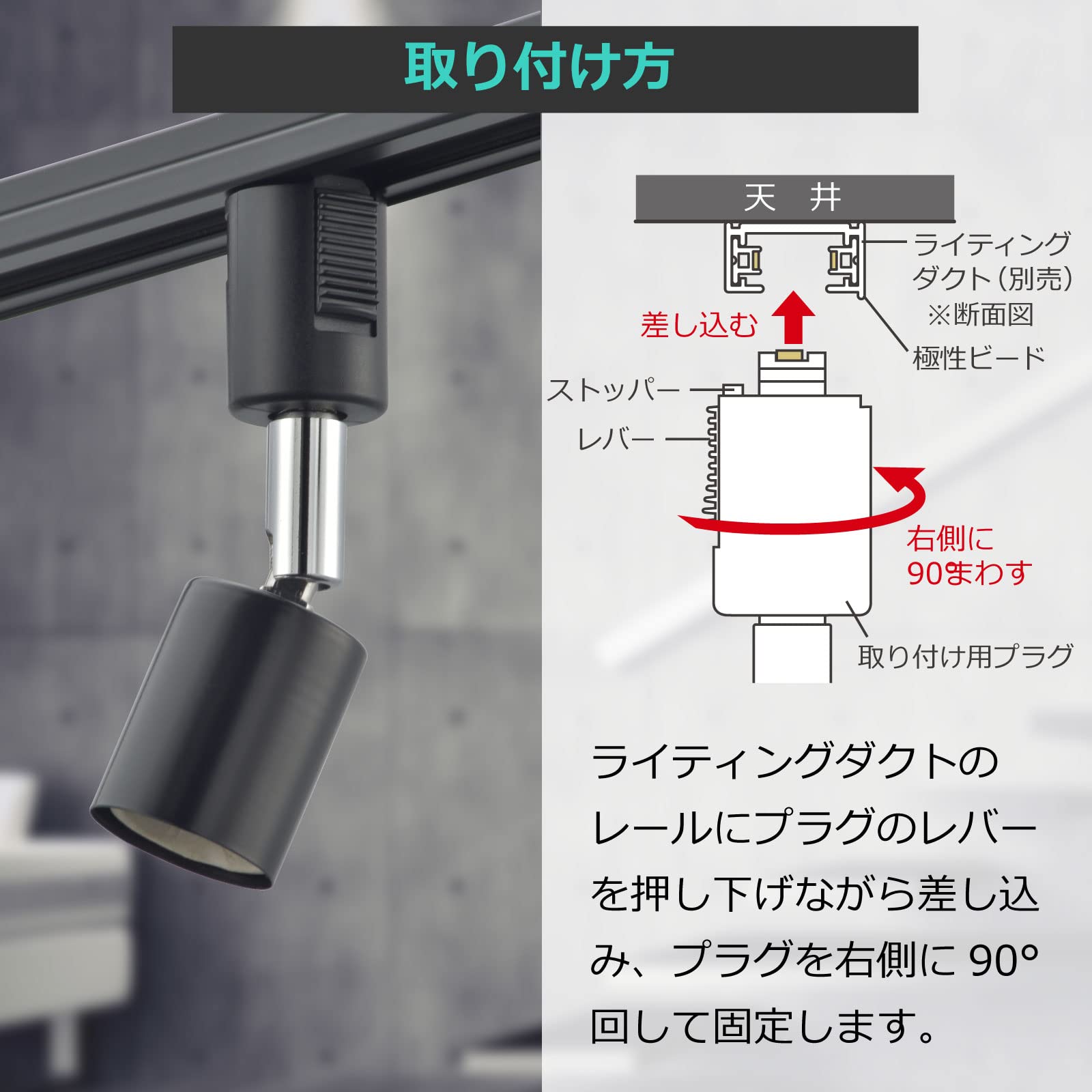 【 特 長 】● ライティングダクト(別売)に簡単に取り付けできます● ライトの向きを自由に動かせます● E26口金● 電球別売(白熱球100W、LED電球12Wまで)● 本体カラーはブラック● 屋内用