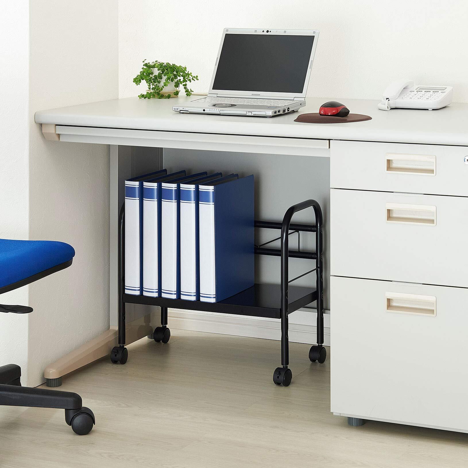 【大人気商品】ベルカ(Belca) 机の下が収納空間に! デスク下フリーラック 収納棚 伸縮タイプ ブラック 幅41~60×奥行29.5×高さ45cm 幅伸縮 高さ調節可能 キャスター付き DR-EX | ももくま屋さん