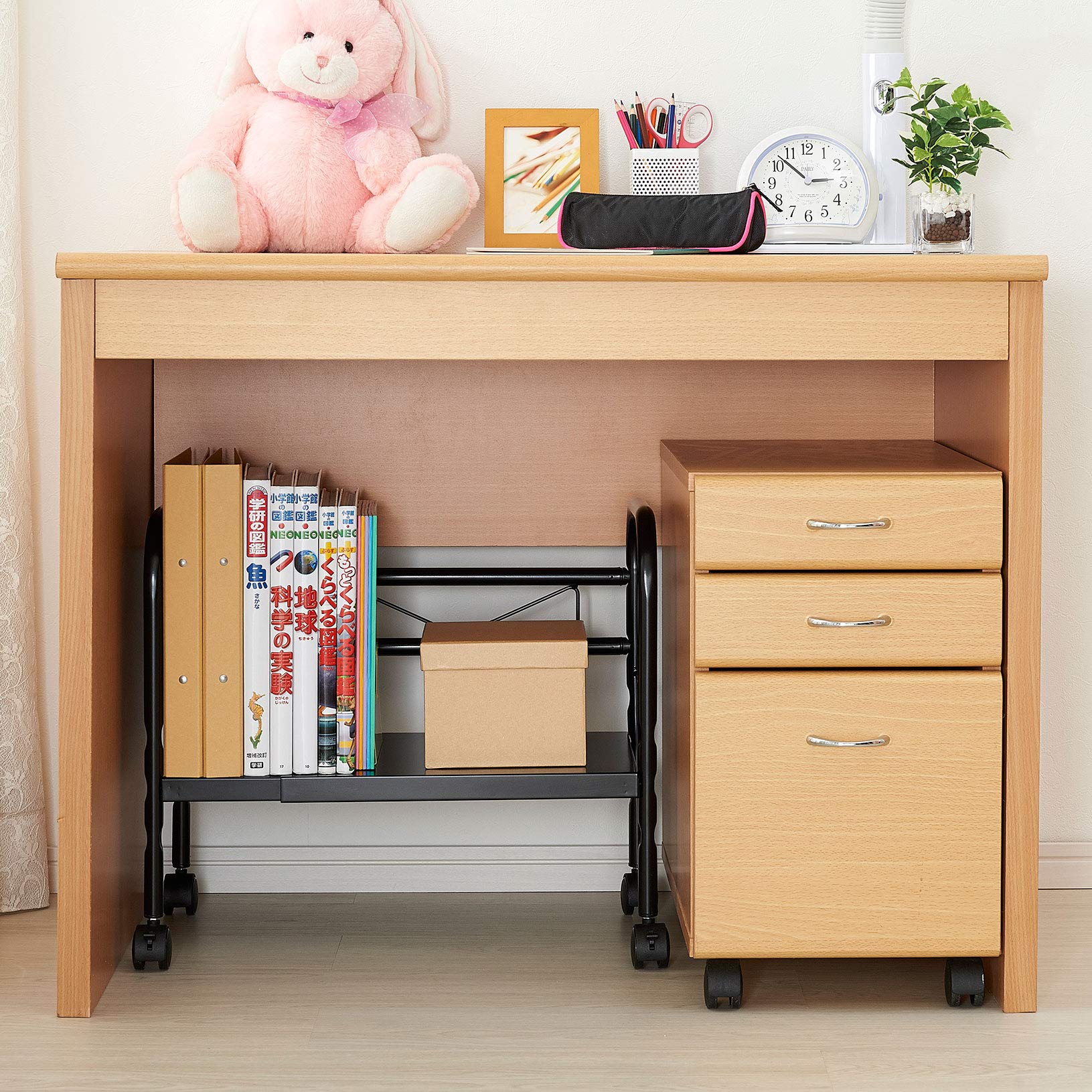 デスク下が収納空間に、ぴったり使える幅伸縮タイプ。