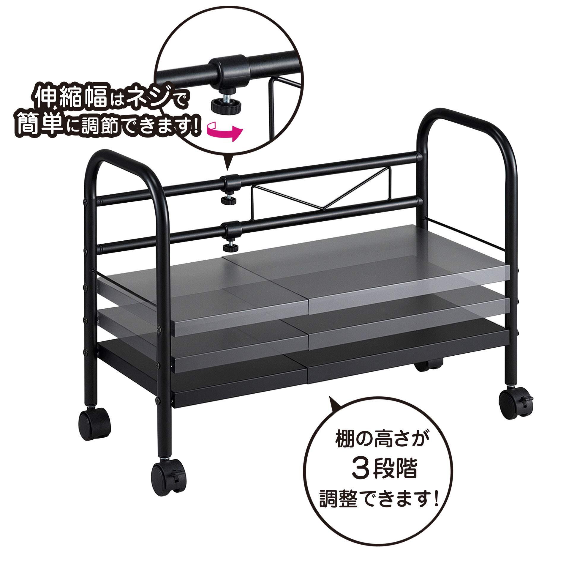 棚板の高さは3段階調節可能で、移動ラクラクキャスター付き。