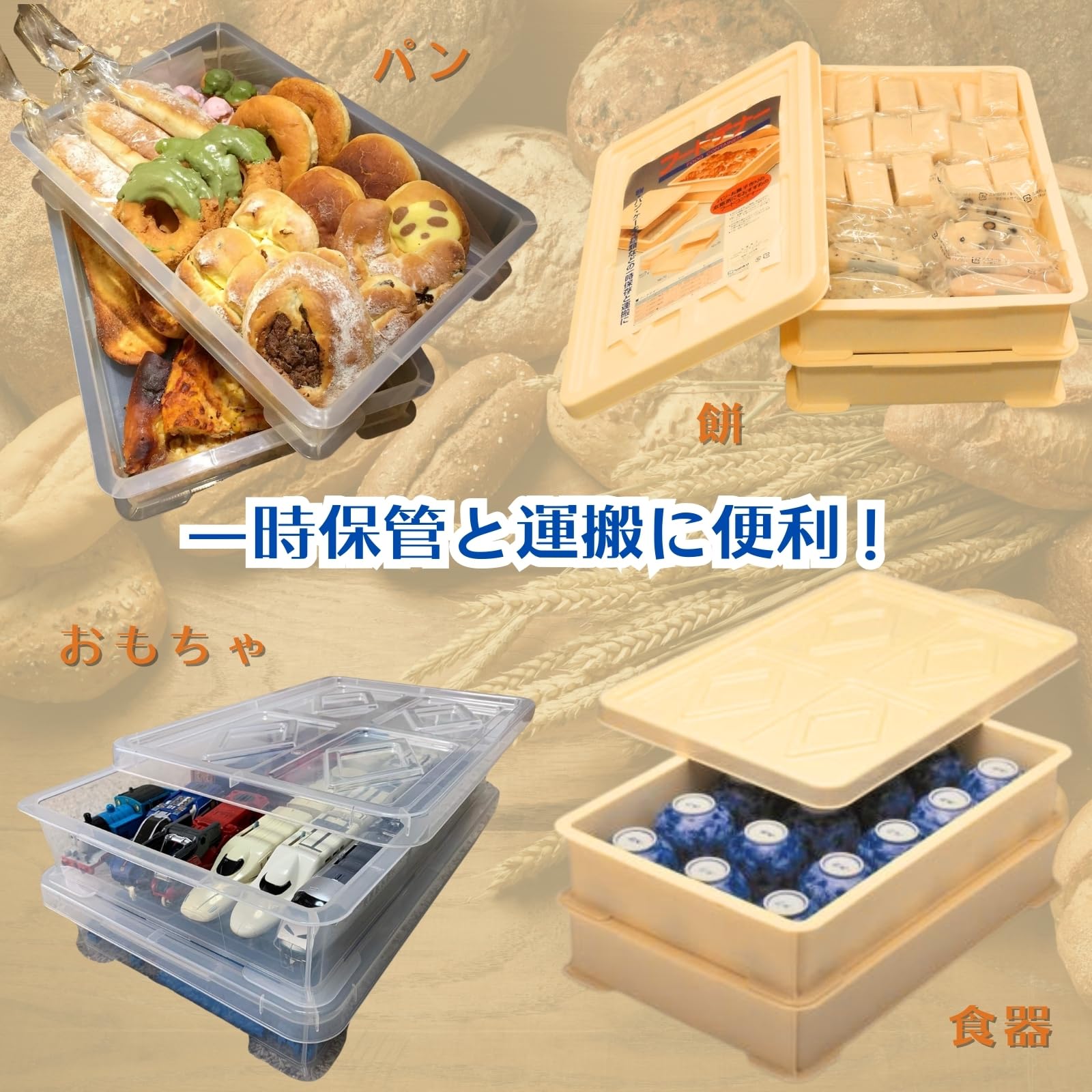 フードテナー、NO.10・NO.20用共通の蓋。パンや餅、ケーキなどの食品をホコリから守ります。蓋(本体別売り)をしたままでの積み重ねが可能なので運搬に便利。