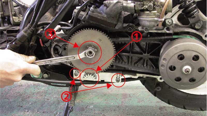 2本製品をケースカバーのネジ穴を利用し純正ボルトで固定し、ドライブフェイスの回転をロックします。