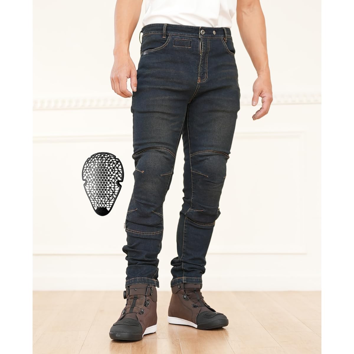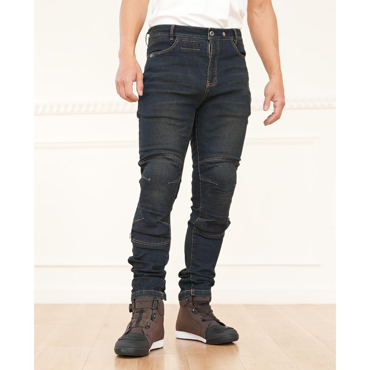 【大人気商品】[KOMINE] 2025モデル WJ-7495R エニグマライトプロテクトフィットジーンズ バイク用 春夏秋向け CEプロテクター ストレッチ Deep Indigo XL/34 | ももくま屋さん