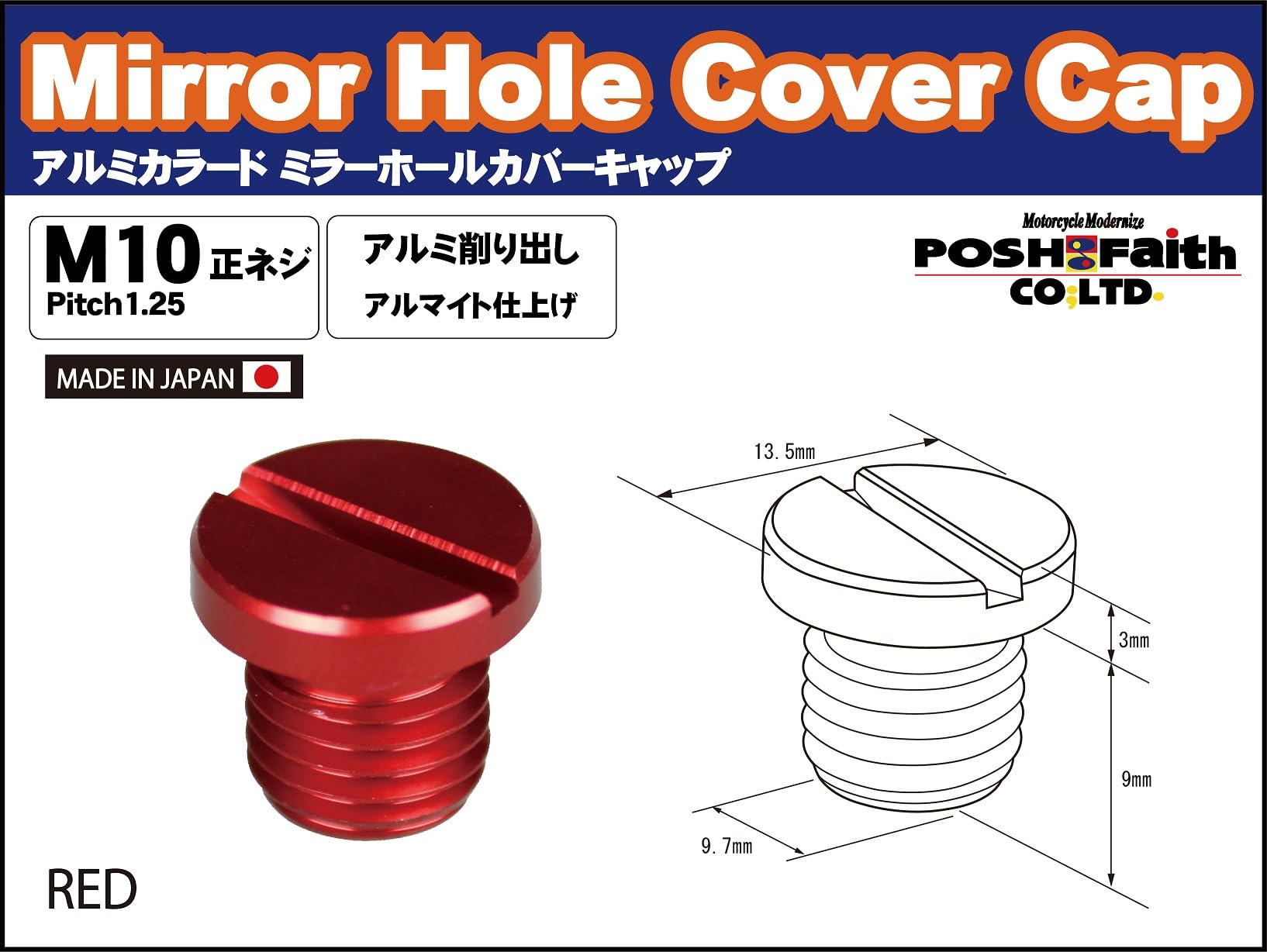 ポッシュフェイス(POSH FAITH) バイク用品 アルミカラードミラーホールカバーキャップ(1個入) M10-P1.25 正ネジ 1個入り レッド 000806-02