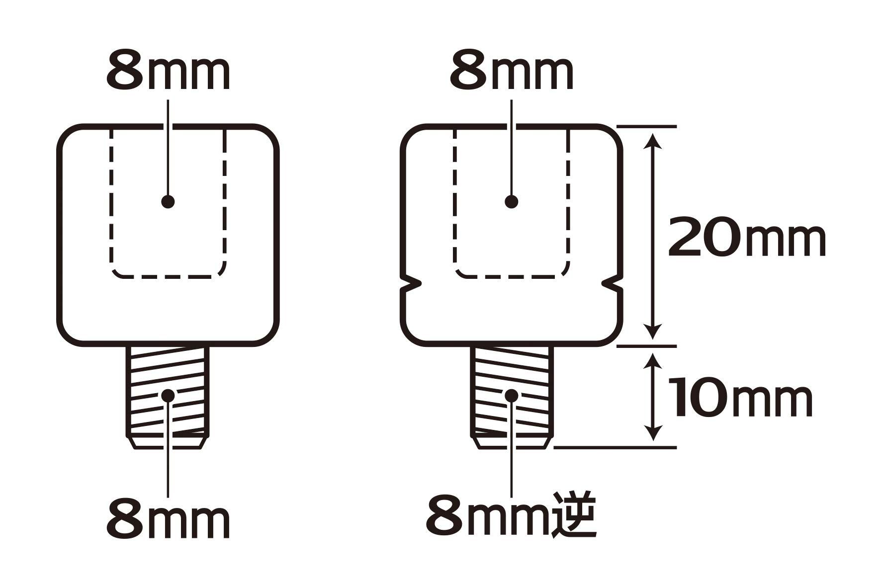 正ネジ8mmのミラーを正ネジ8mm&逆ネジ8mmへ変換できます。