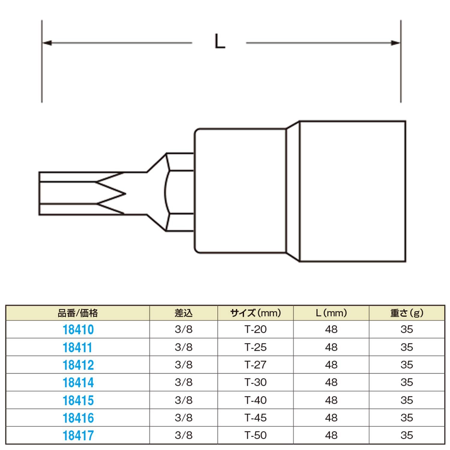 デイトナ(Daytona) バイク用 工具 ヘクサロビュラ(トルクス) ソケット T-30 差込角3/8インチ 18414