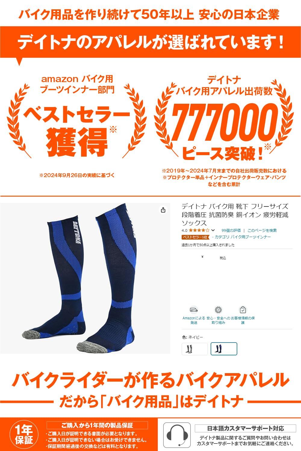 デイトナ バイク用 靴下 フリーサイズ 段階着圧 抗菌防臭 銅イオン 疲労軽減ソックス