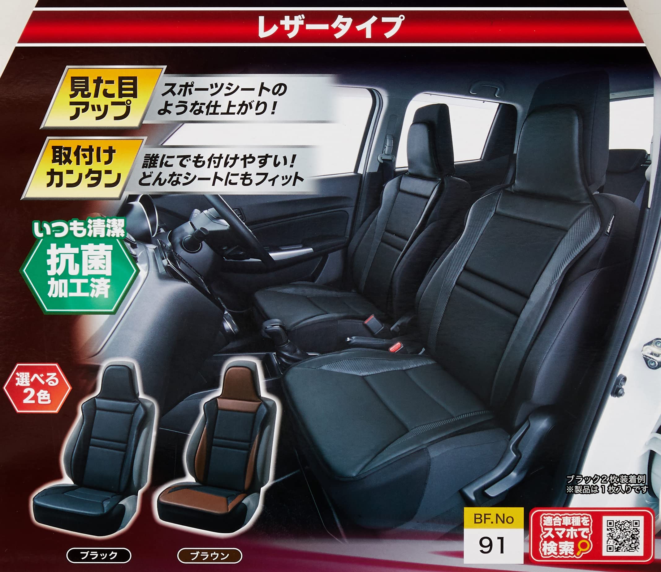 ボンフォーム(BONFORM) シートカバー レーシングレザー 軽/普通車 前席フリーサイズ 抗菌防臭ブラック 4078-91BK