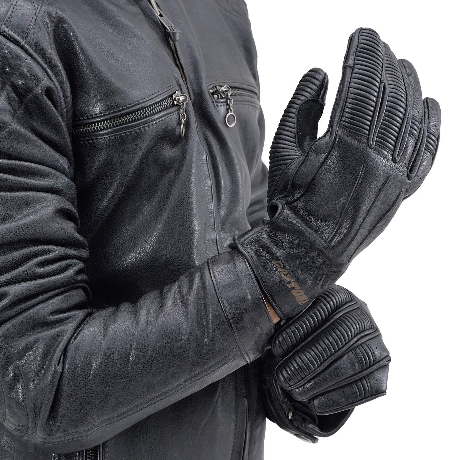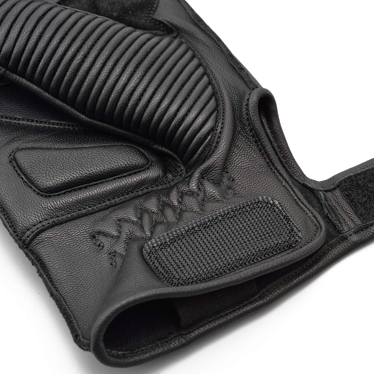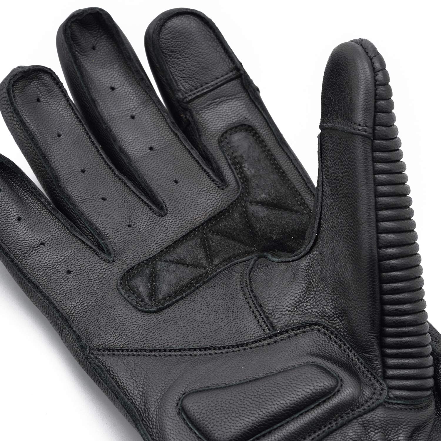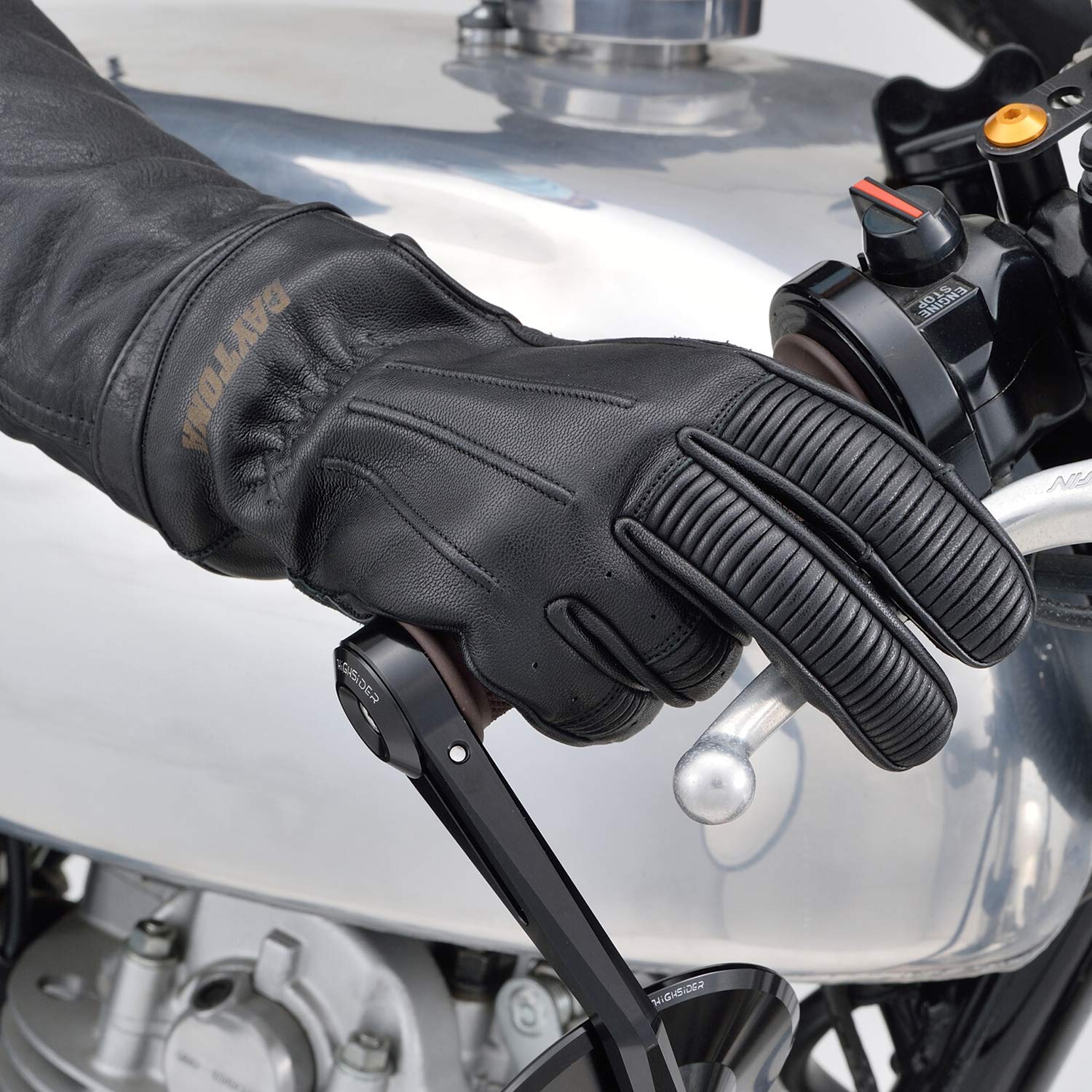 ・指先にシャーリングと手のひら側の外縫い仕上げが、カフェレーサーらしさを演出するとともに握り心地を向上させました。