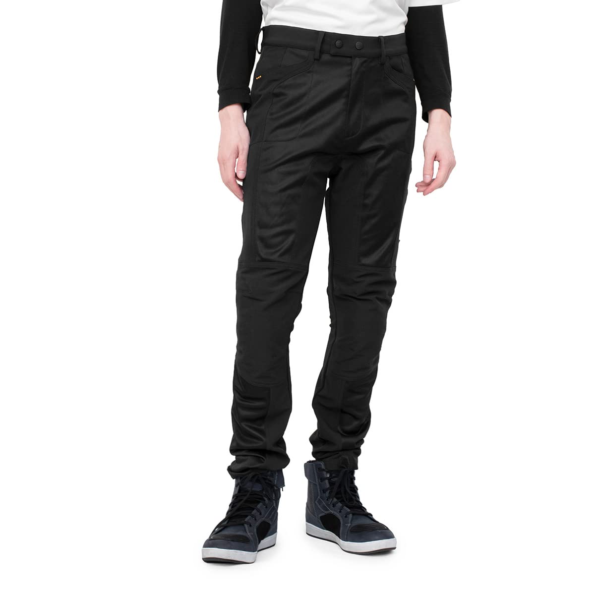 どんな車種にも合わせやすいメッシュジーンズ。側面・ヒップ・膝といったストレスのかかる部分には伸縮性の高いテキスタイルを使用。膝にはCE規格レベル2のソフトプロテクター、腰横にはウレタンパッドを標準装備。