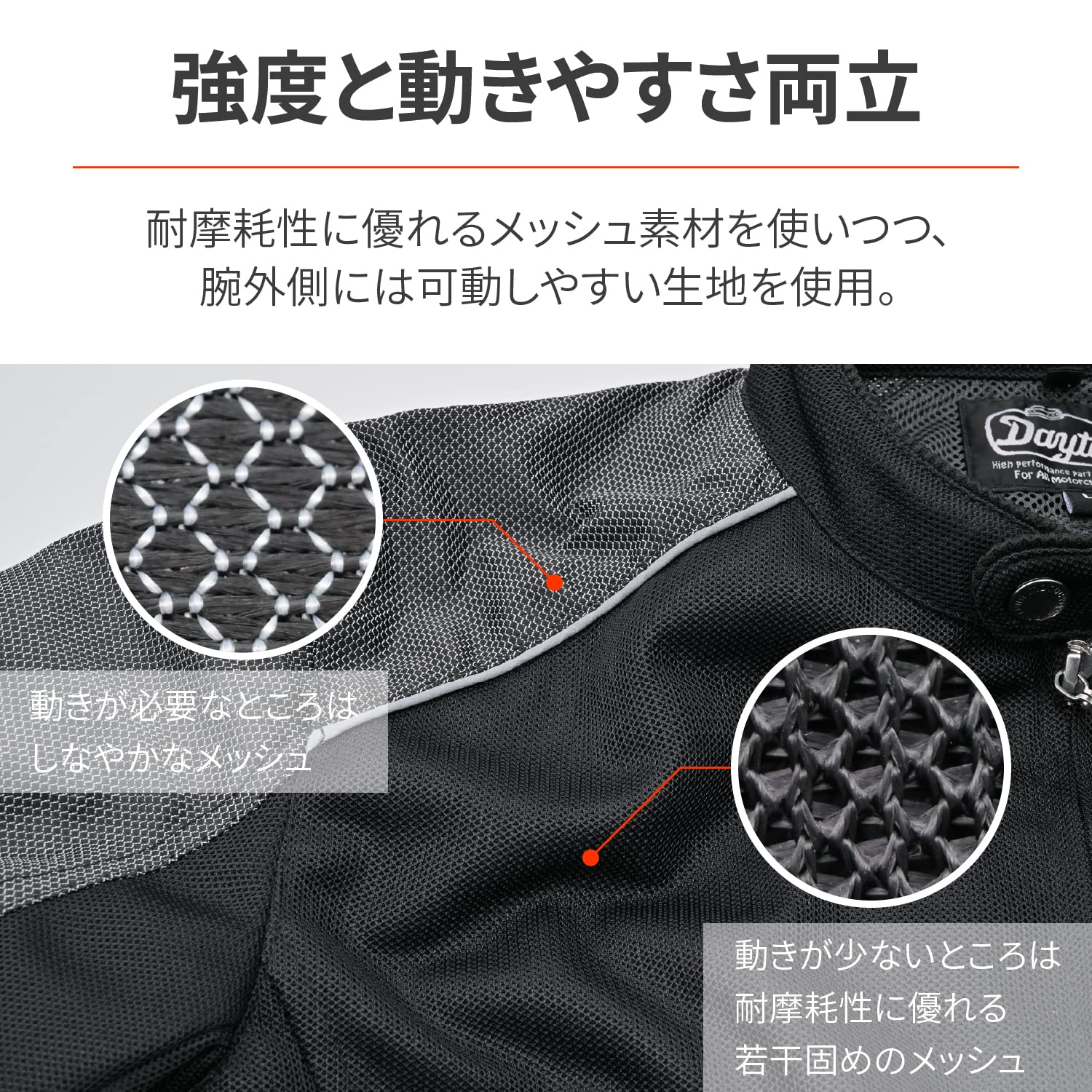 夏に快適なフルメッシュジャケット。全面にメッシュ素材を使って快適な風を取り込み