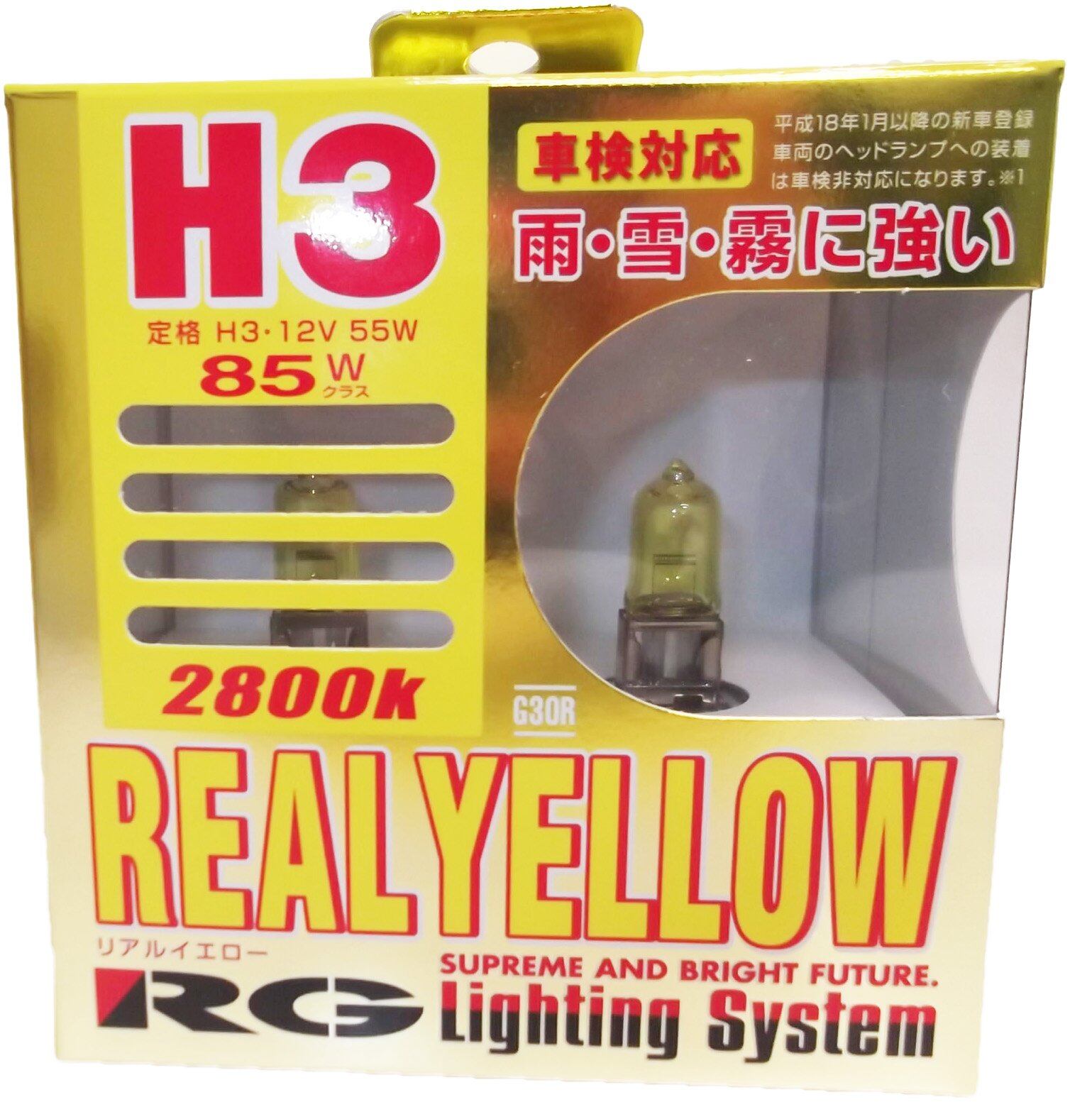 レーシング ギア ( RACING GEAR ) ハロゲンバルブ 【リアル イエロー 2800K】 H3 2個入り G30R