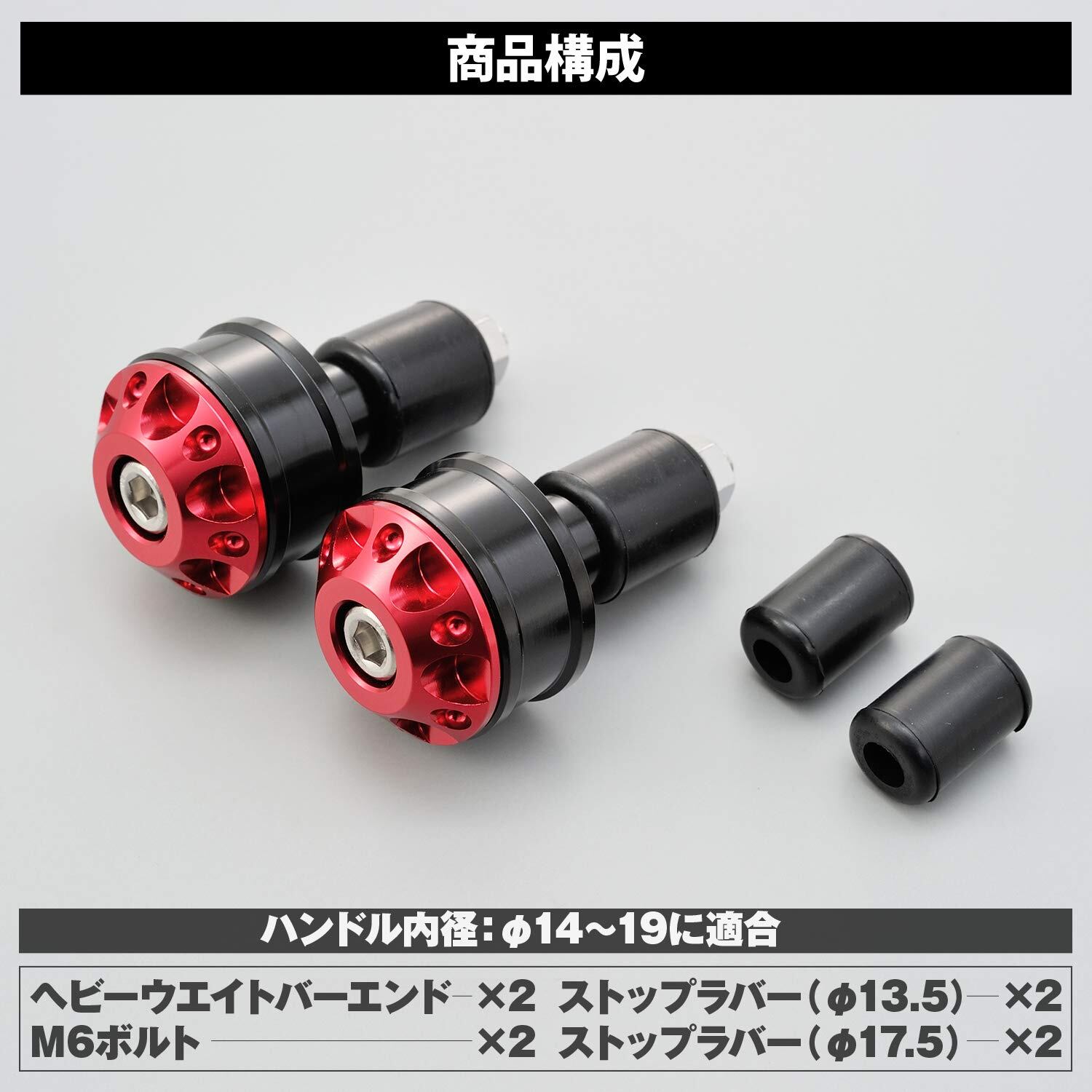 ●幅広く対応する汎用タイプのアルミビレッドバーエンド! ハンドルのドレスアップ、転倒時のレバー、スロットル、グリップの保護に最適です。