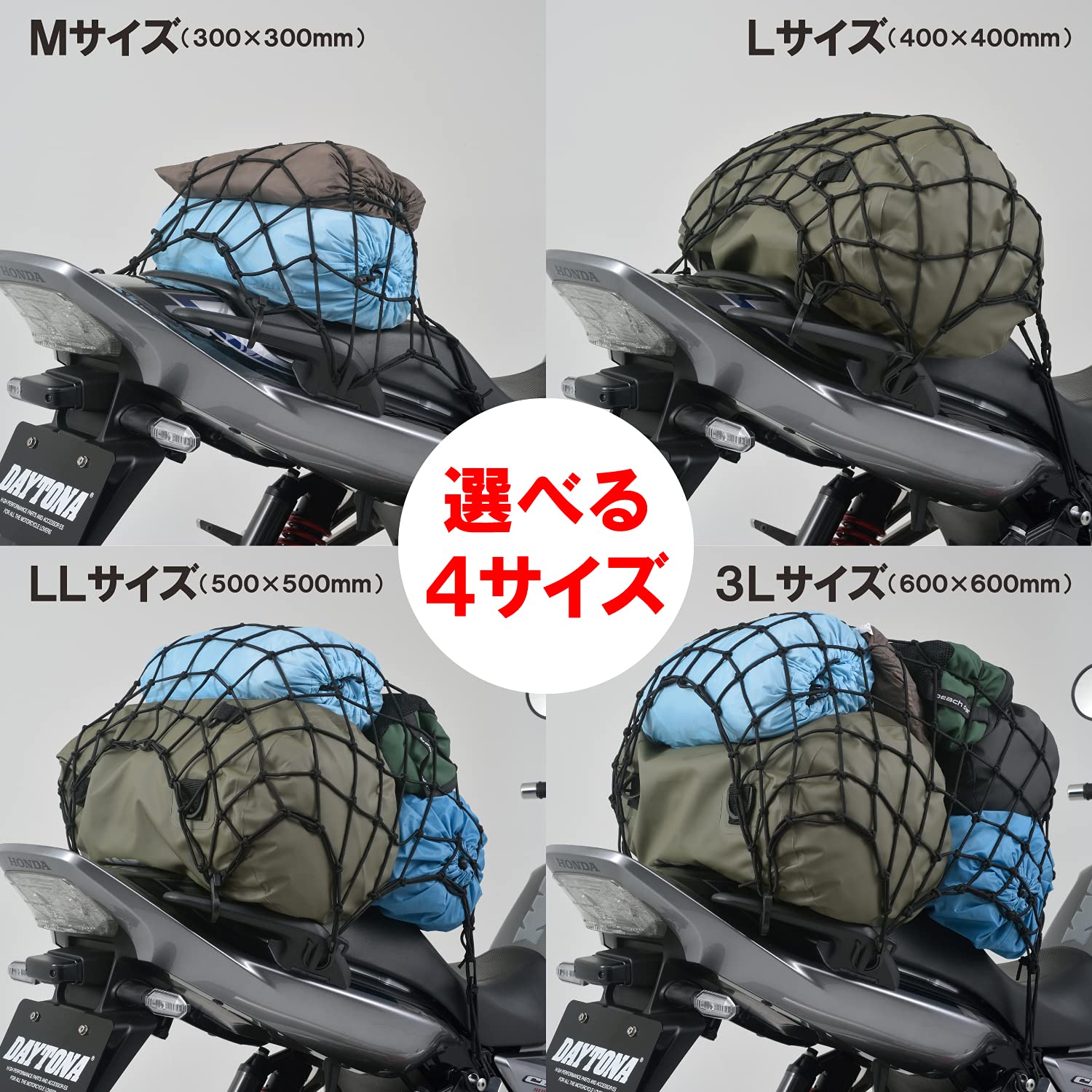【大特価商品】デイトナ(Daytona) バイク用 ツーリング ネット Mサイズ(300×300mm) フック6個付属 収納ポーチ付きネット&フック ブラック 72182