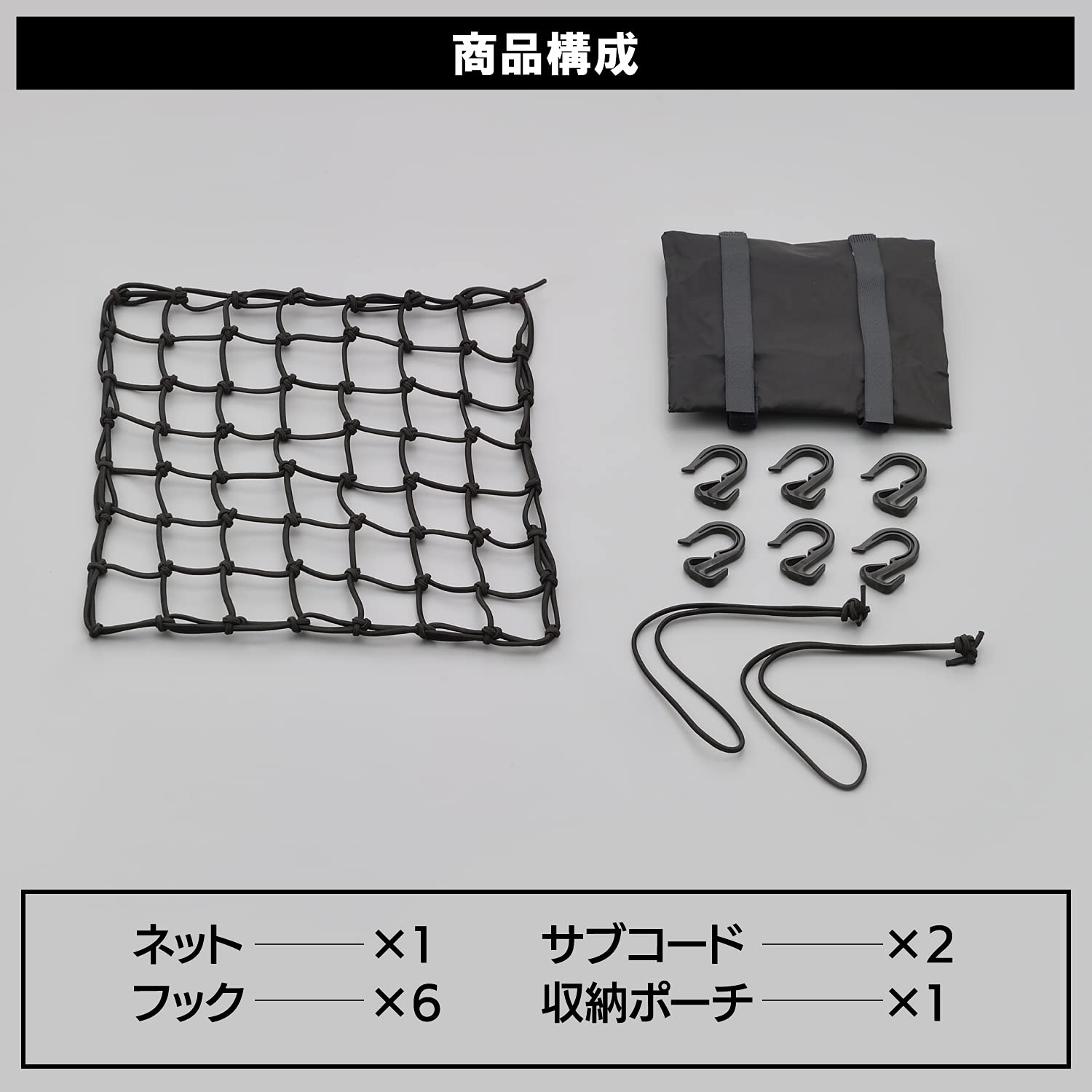 デイトナ(Daytona) バイク用 ツーリング ネット Mサイズ(300×300mm) フック6個付属 収納ポーチ付きネット&フック ブラック 72182
