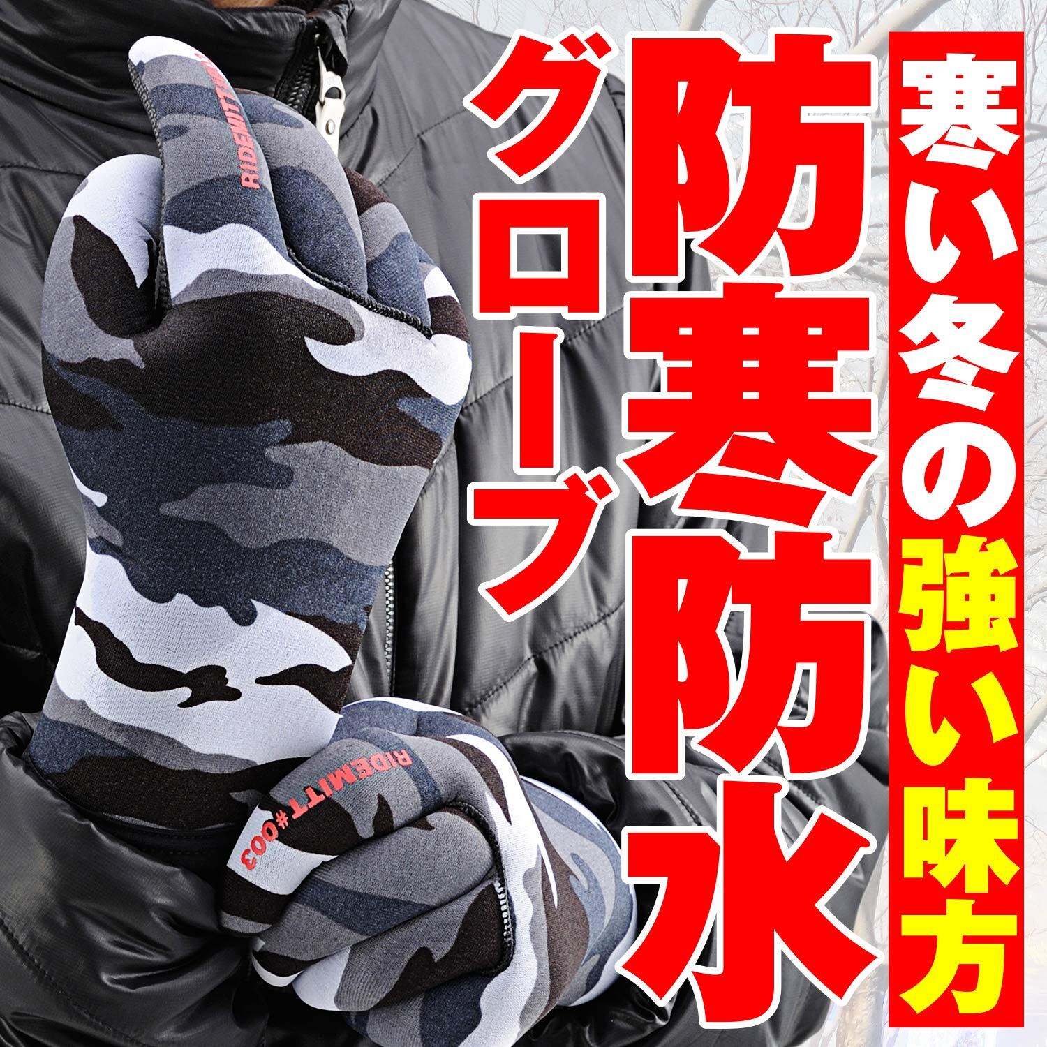 デイトナ(Daytona) RIDEMITT(ライドミット) バイク用 グローブ 秋冬 防水 ネオプレン 防水グローブ 003 グレーカモフラージュ Lサイズ 68015