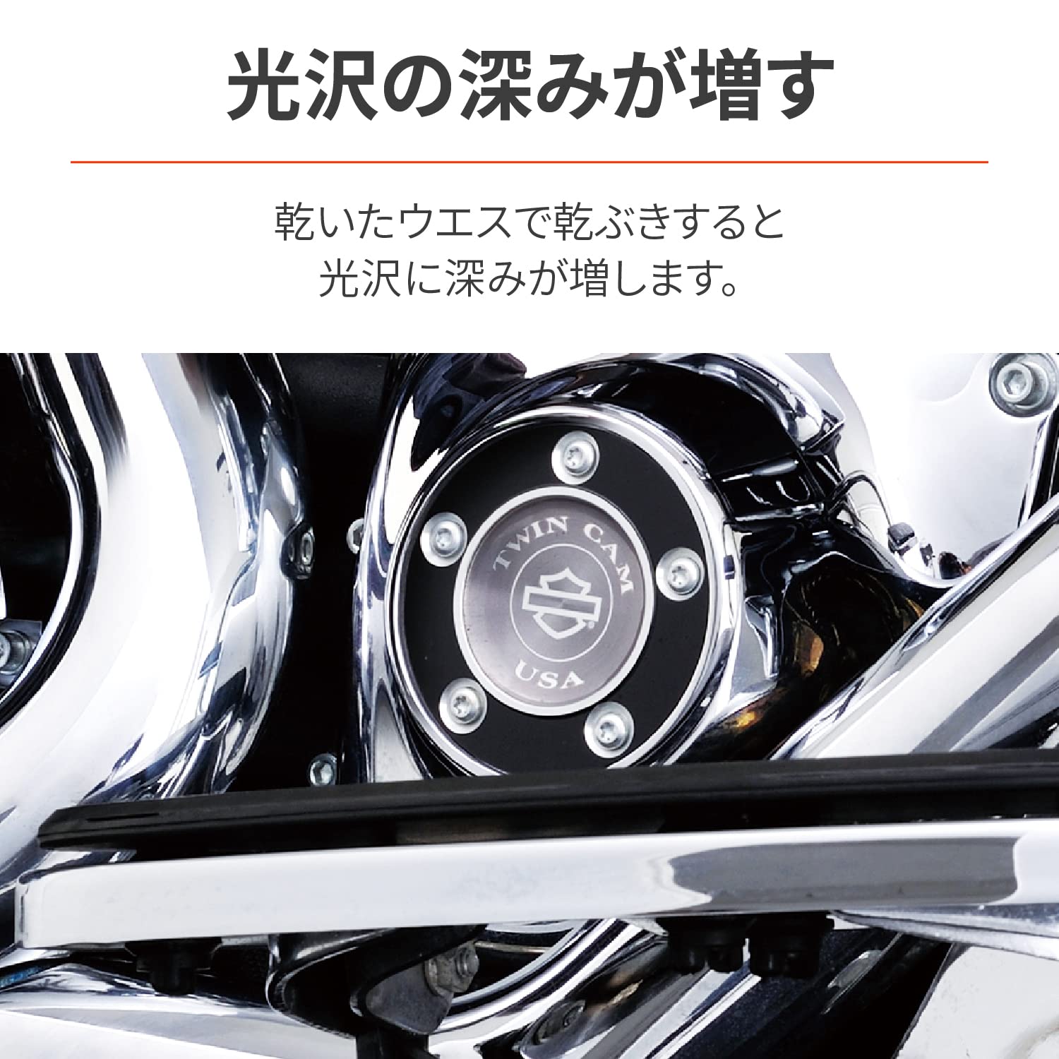 ●画像はイメージです。<br>●製品仕様を十分ご確認のうえ、使用方法を守り正しくお使いください。<br>●金属面のクロームメッキ部以外(樹脂メッキなど)は使用できません。<br>●塗布面をコンパウンドで磨くと保護防錆効果が落ちます。<br>●あやまってクロームメッキ以外の物に付着した場合は、すみやかにふき取ってください。表面を変色・変質・溶解させる恐れがあります。<br>●120℃以上になるマフラーには使用できません。