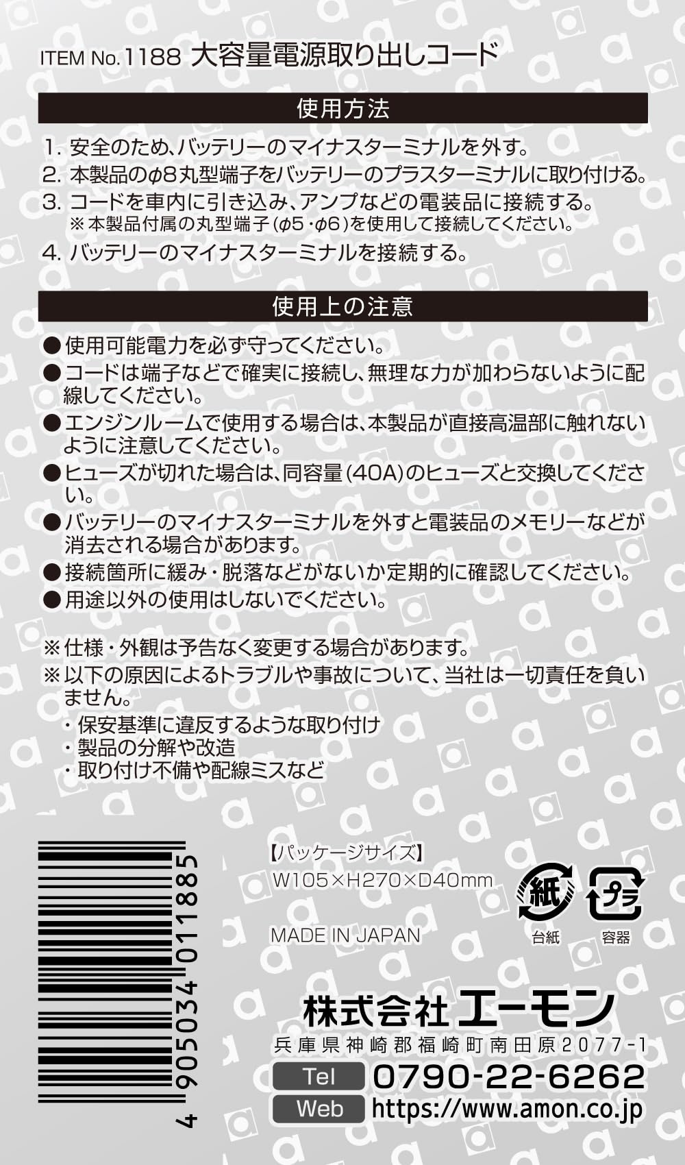 2024年4月1日より、社名が「エーモン工業株式会社」から「株式会社エーモン」へ変更となりました。
