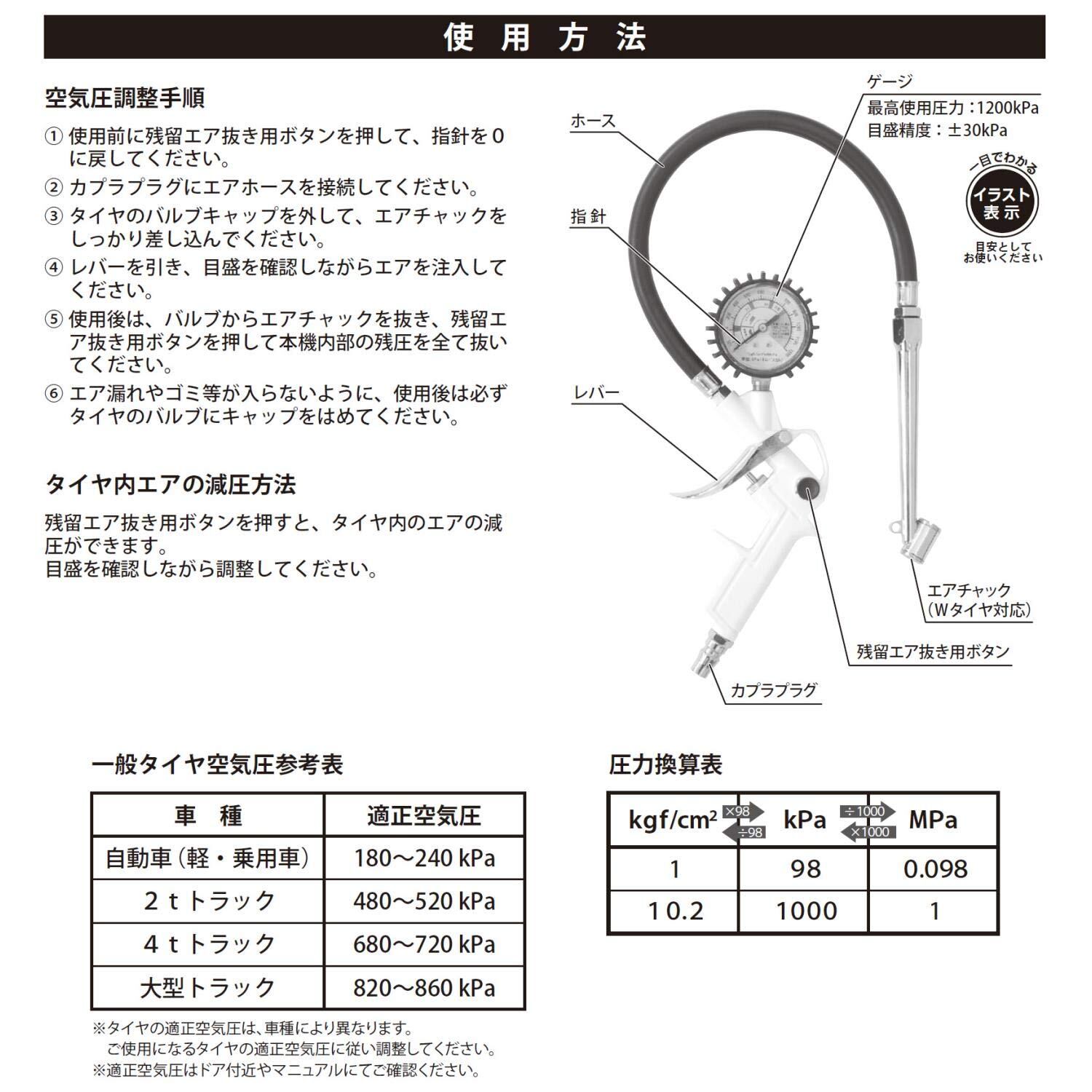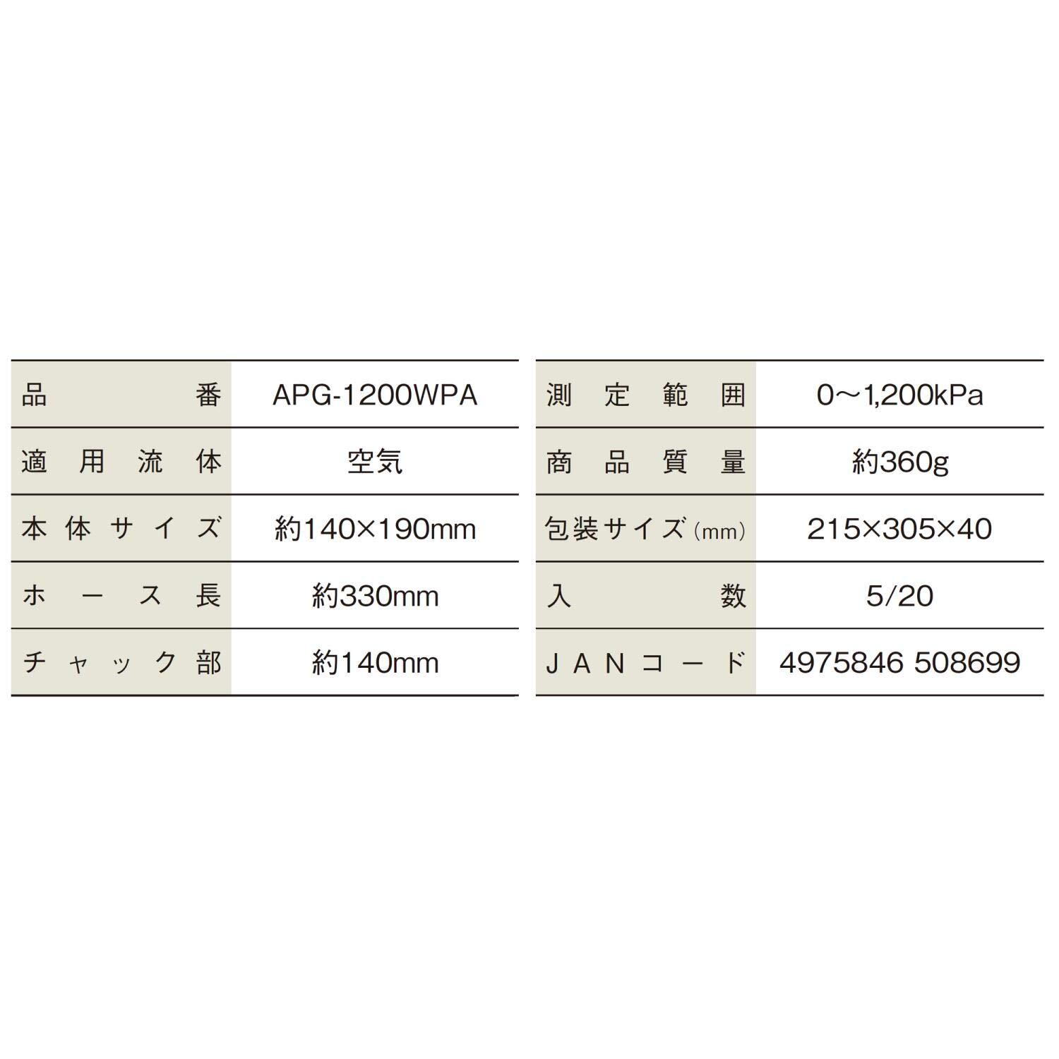 パオック(PAOCK) エアプレッシャーゲージ APG-1200WPA ダブルタイヤ対応