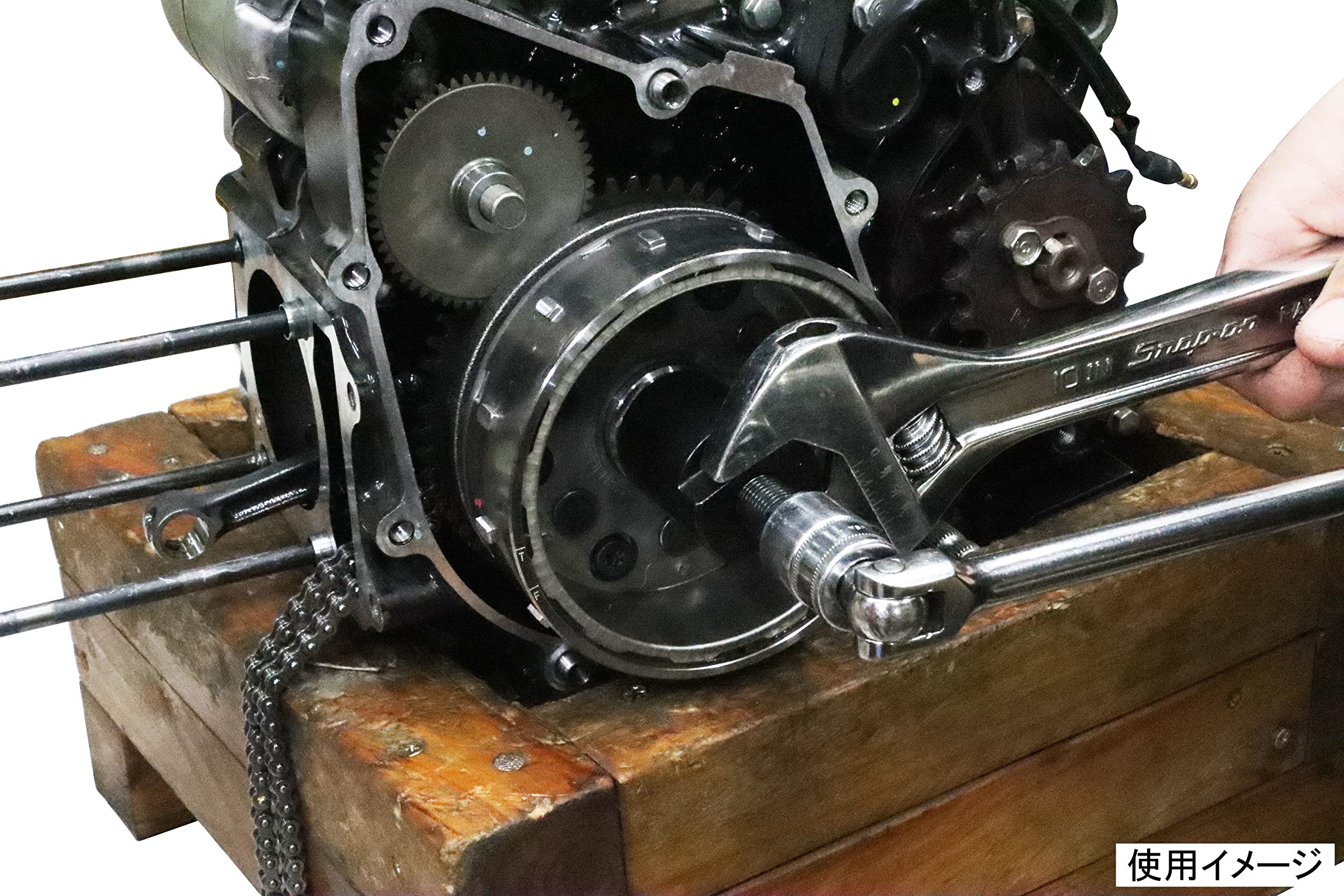 ノーマルフライホイールを引き抜く際に使用する専用工具です。