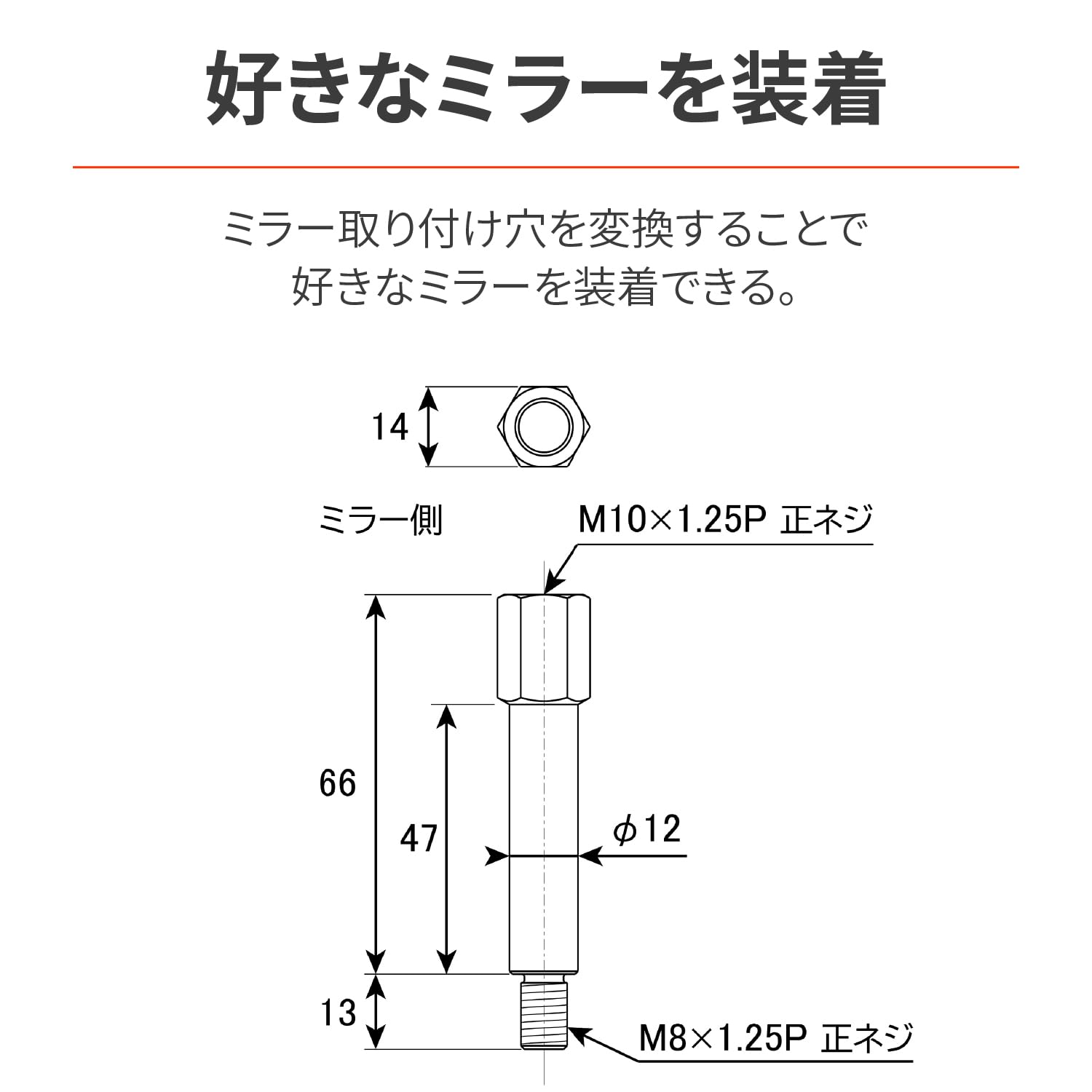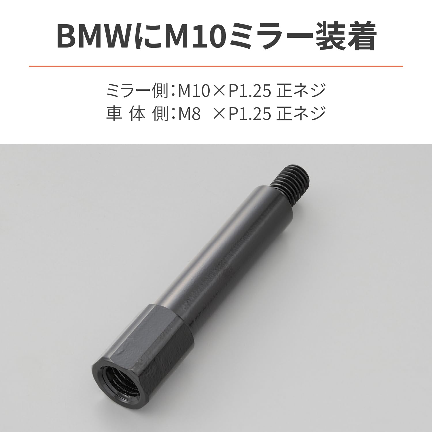 ●BMWバックミラーカスタムの必需品! BMWに一般的なミラー(取付部M10×P1.25右ネジ)を取り付けるための専用アダプター。黒亜鉛メッキ仕上げ。左右共通。1個売り。