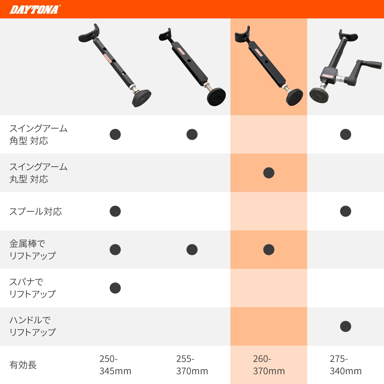 デイトナ(Daytona) バイク用 メンテナンススタンド リア用 レブル250/500/1100対応 有効長260-370mm イージーリフトアップスタンド ラウンドタイプ 32722