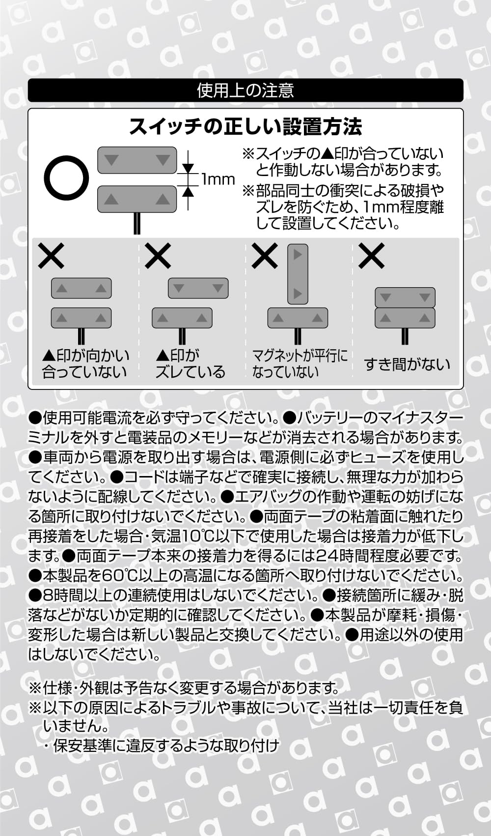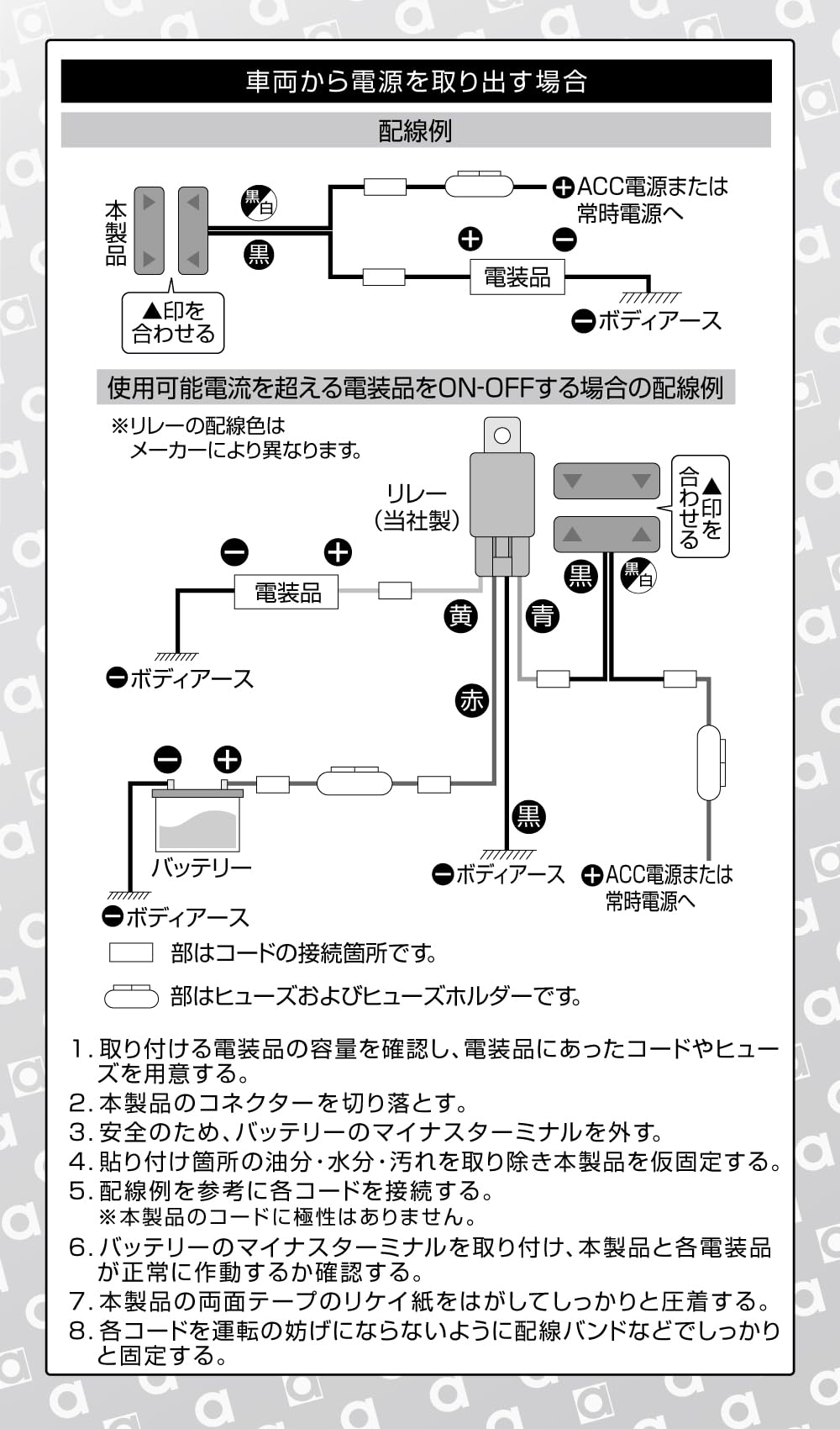 使用可能電流:DC12V車専用・200mA以下