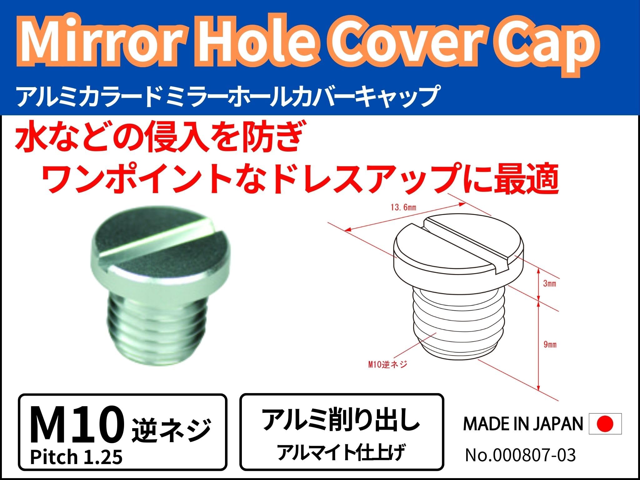 アルミ削り出しのミラー穴埋めキャップ、バーエンドミラー装着時などに使用しなくなったミラー穴を埋めるボルトです。MADE IN JAPAN ハンドル周りのクオリティを高めます。
