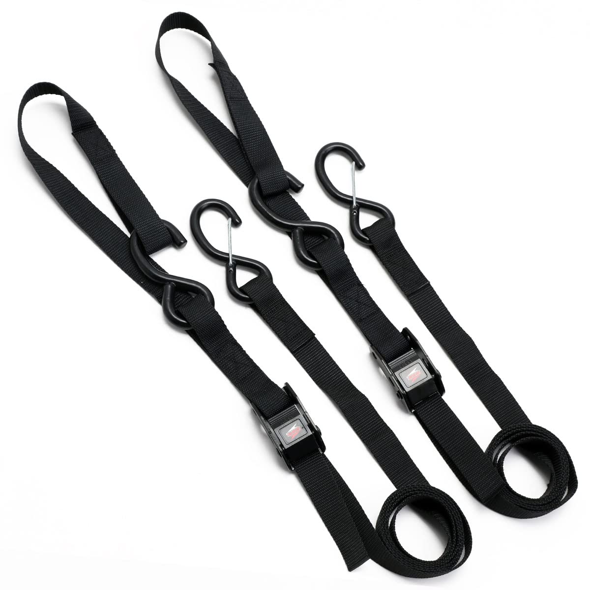 【特価商品】ディーアールシー(DRC) T2カムバックルタイダウン 2本入り 傷付き防止ストラップ 外れ防止フック 車両固定 トランポ ブラック D6421(旧品番:D36-05-420) ダートフリーク DIRTFREAK | ももくま屋さん