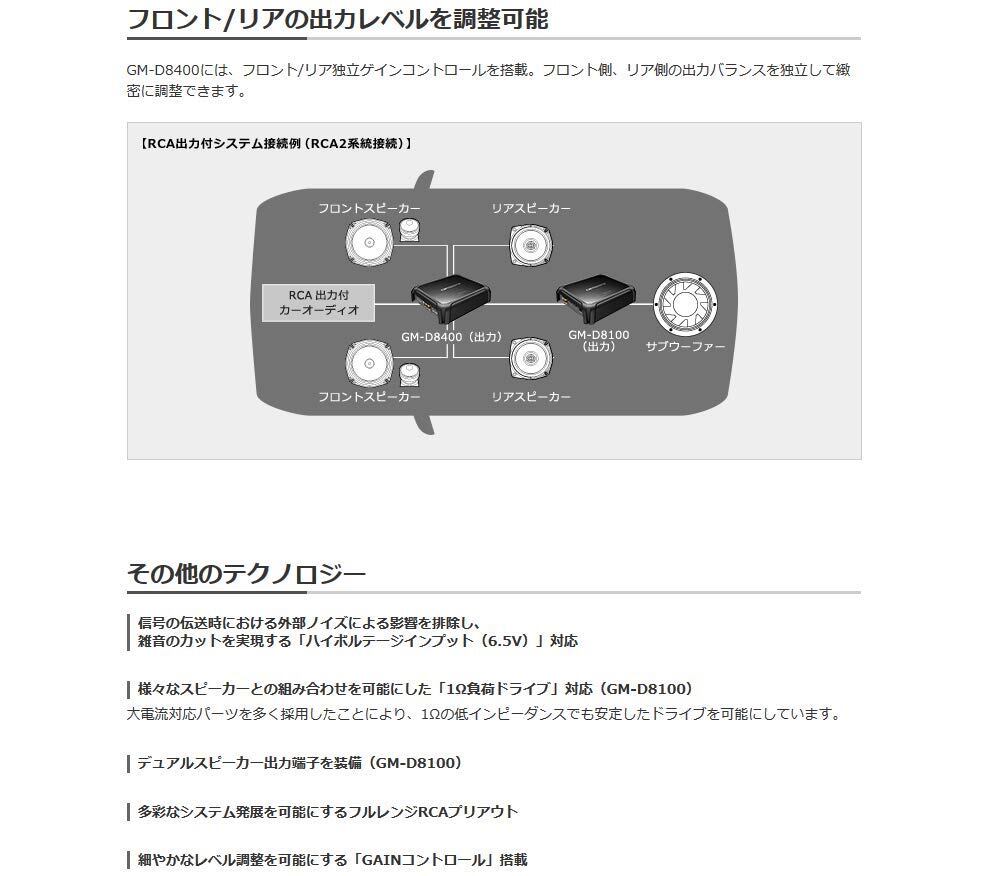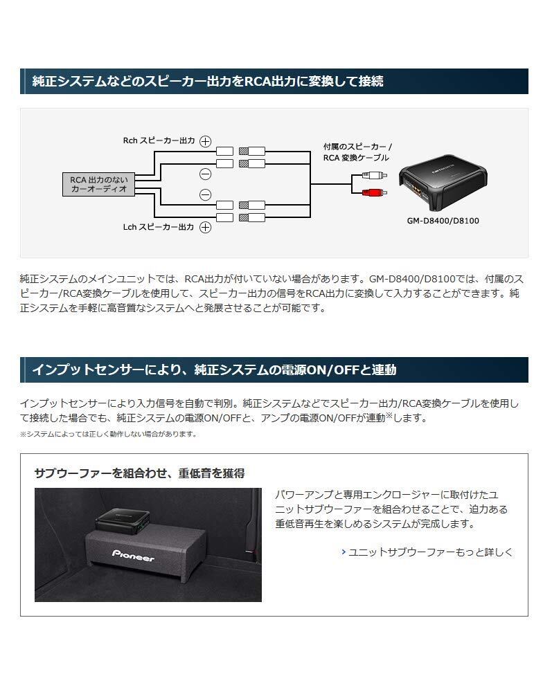 パイオニア パワーアンプ GM-D8400 200W×4 ブリッジャブルパワーアンプ カロッツェリア