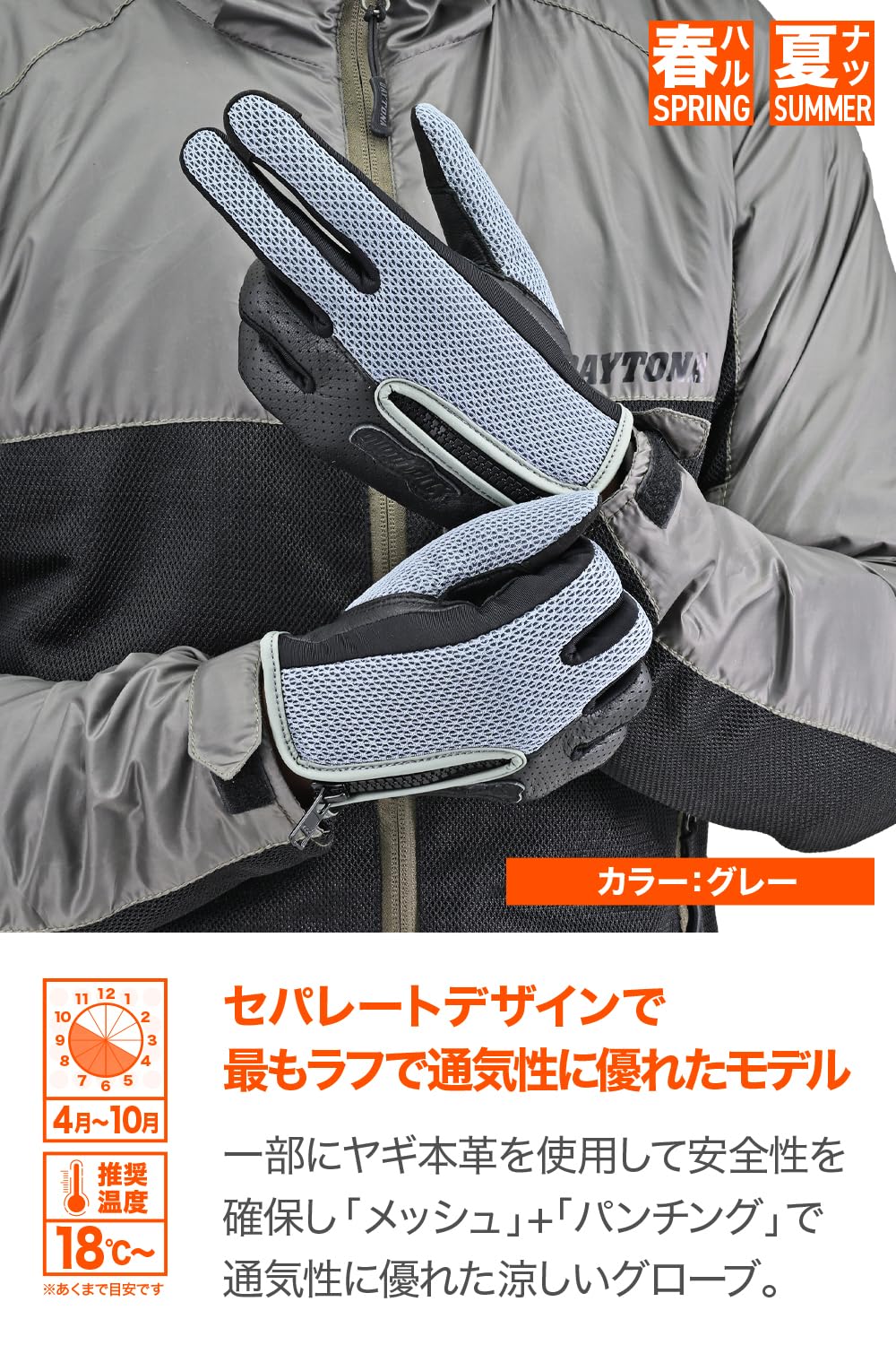 【人気商品】デイトナ(Daytona) バイク用 グローブ 春夏 手のひら本革(ヤギ革) スマホ対応 パンチングレザー パーシャルフィット メッシュグローブ DG-011 グレー Mサイズ 46128