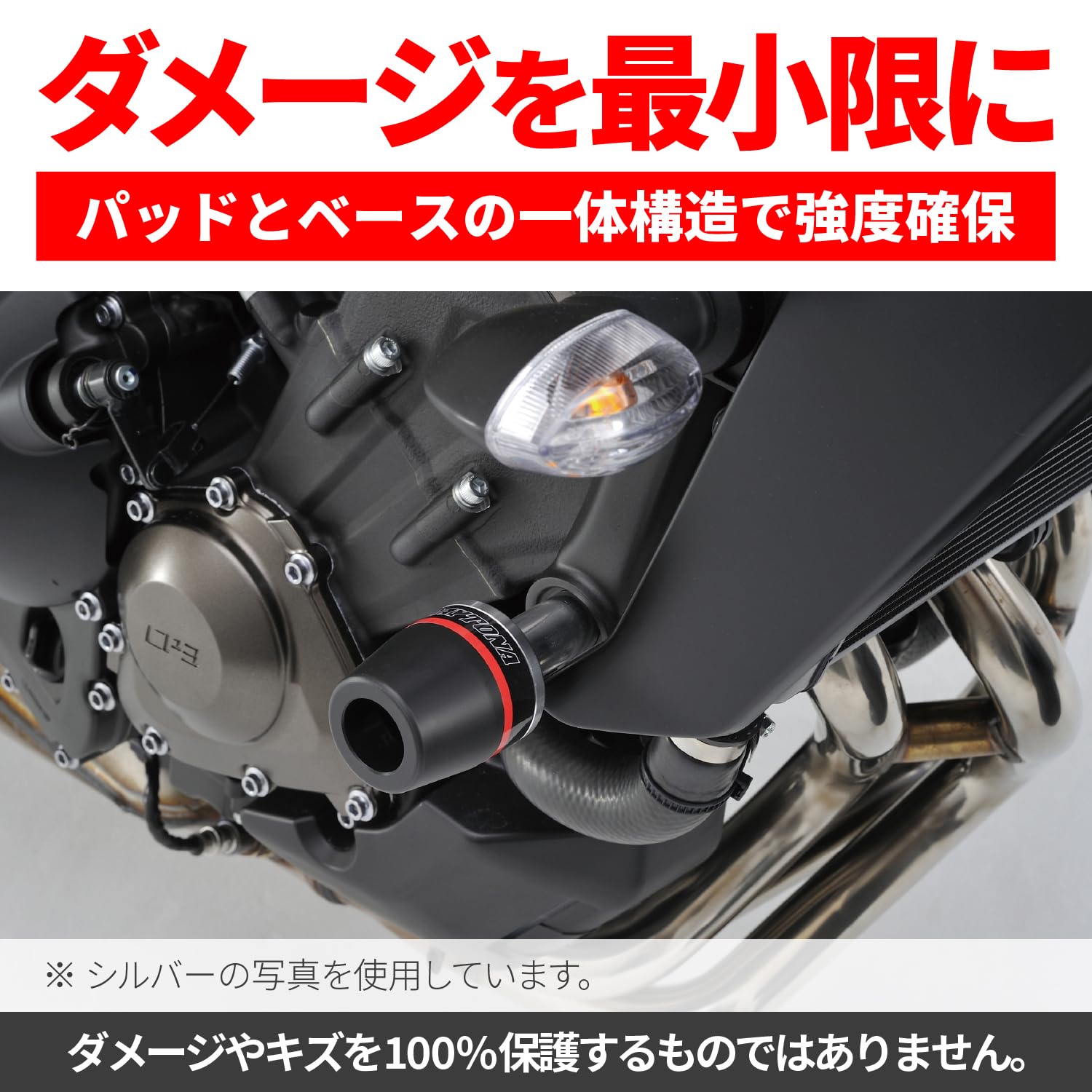 転倒時の衝撃を受け流し、クランクケース割れなどの致命的なダメージを軽減