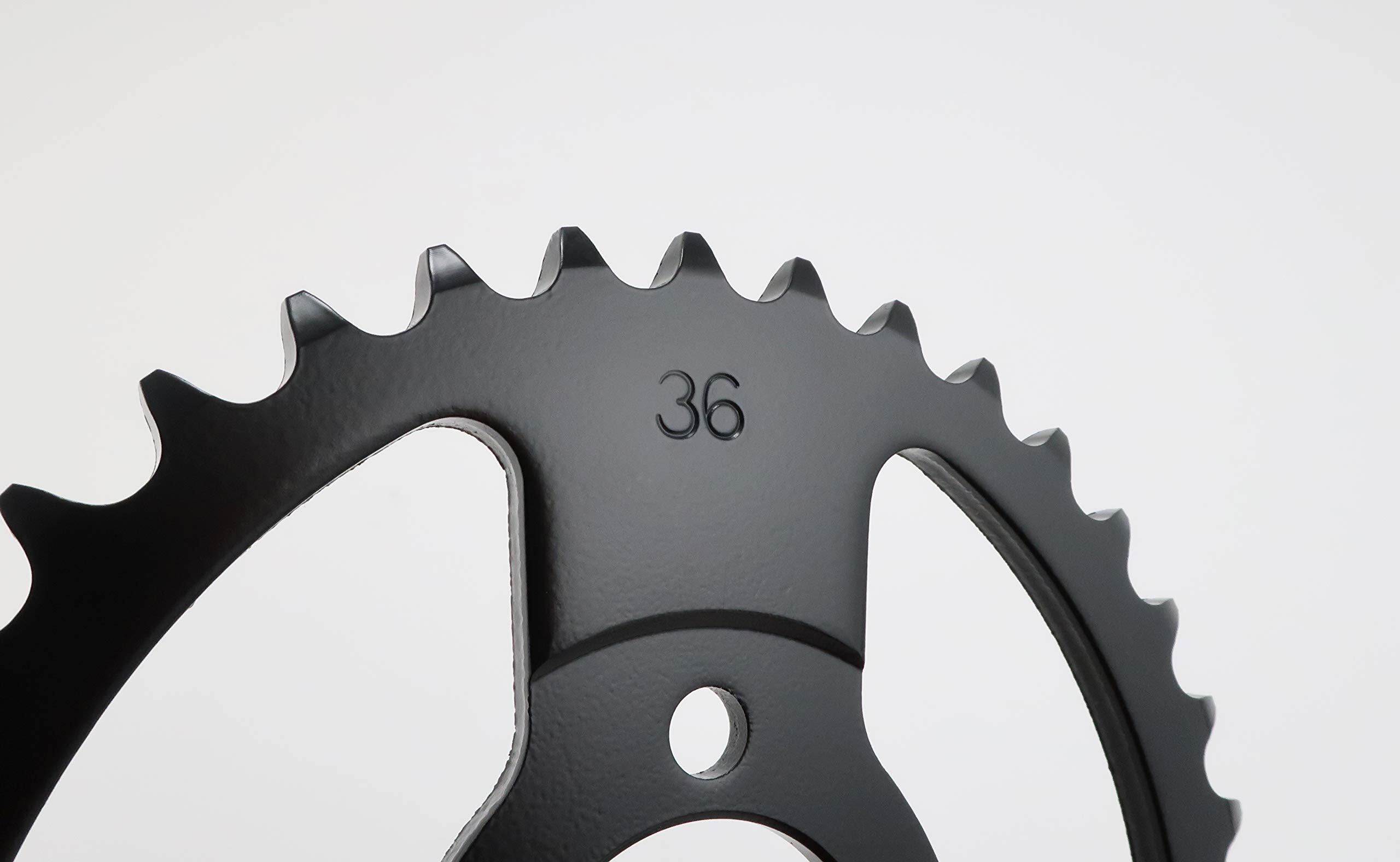 細高い耐久性を誇る高張力鋼を使用したリヤスプロケットです。