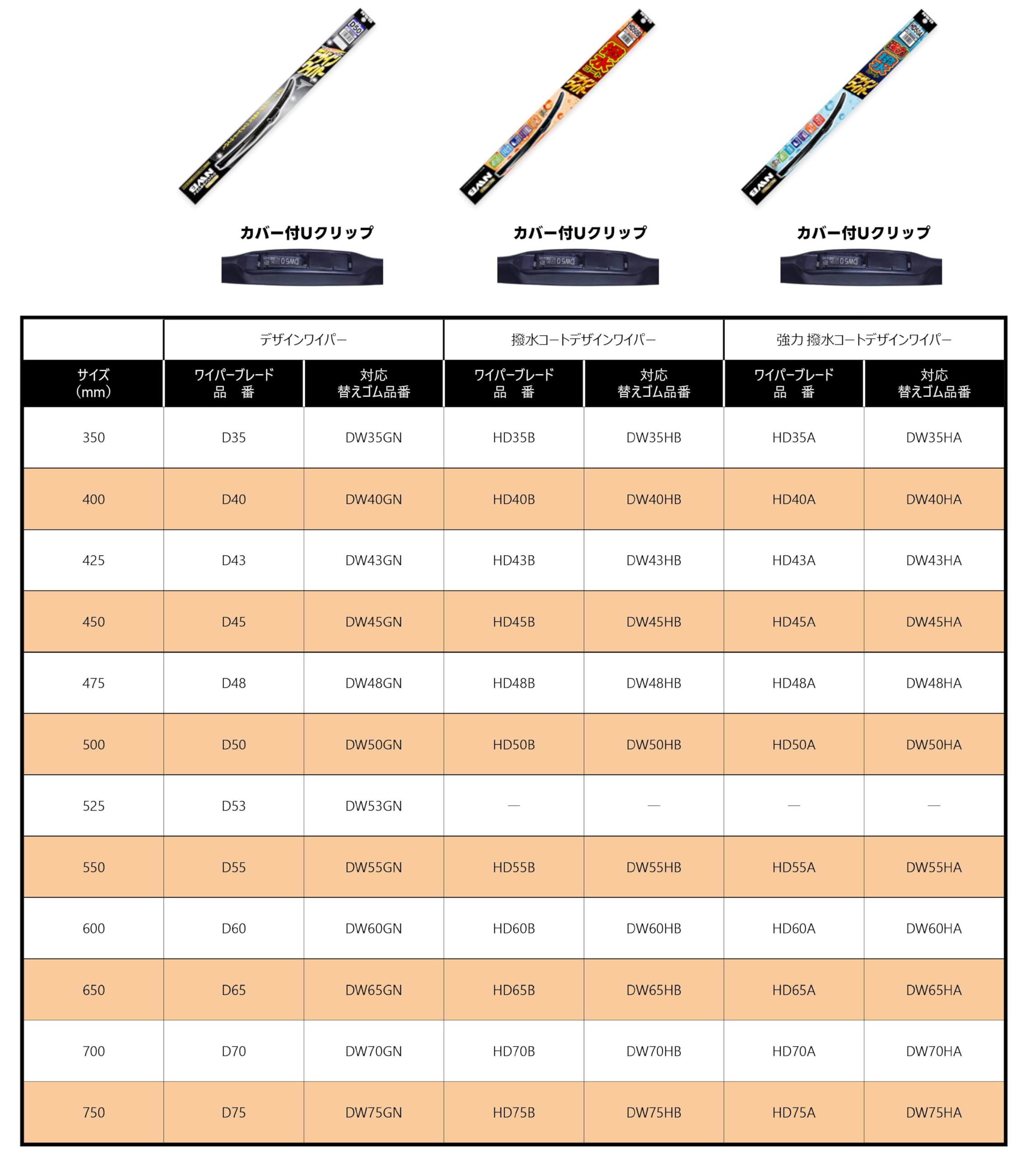【注意事項】現車に装着されているワイパーの長さ・形状をよくご確認の上、同じ長さ・形状のワイパーをお買い求めください。新車時に標準品として装着されていたワイパーと違うものと交換されていたり、オプションなど純正エアロワイパー装着車は適合しない場合がございます。