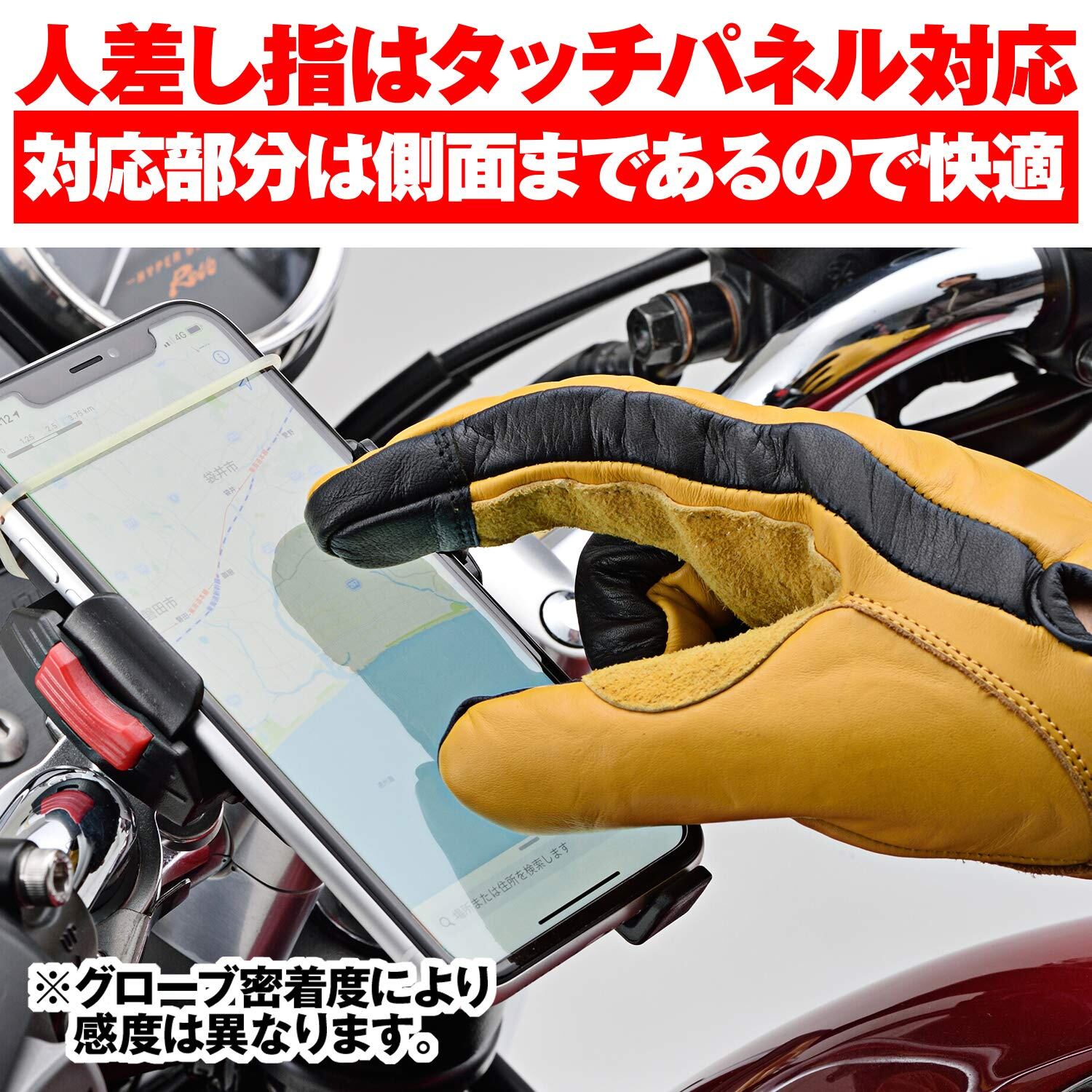人差し指先のタッチパネル対応部は側面まで回り込んでいるので、ストレスなくスマートフォンを操作できます。