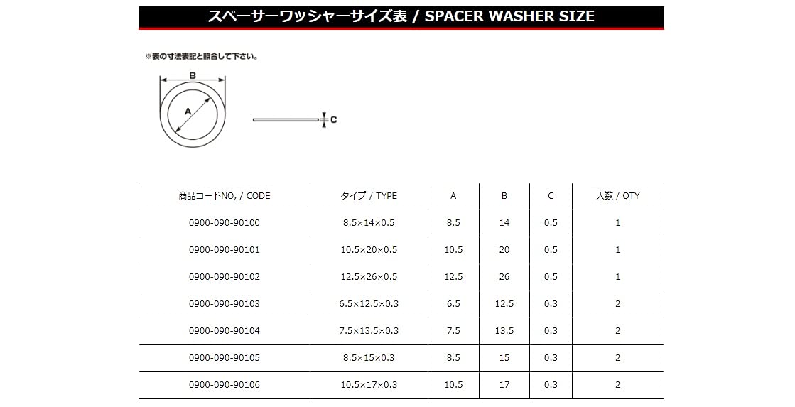 キタコ(KITACO) スペーサーワッシャー 汎用2個入り 10.5X17X0.3 K-CON 0900-090-90106