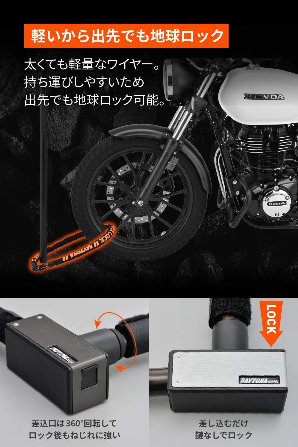 デイトナ(Daytona) バイク用 ワイヤーロック φ15mm ストロンガーワイヤーロック 鍵タイプ 1200mm ブラック 97665