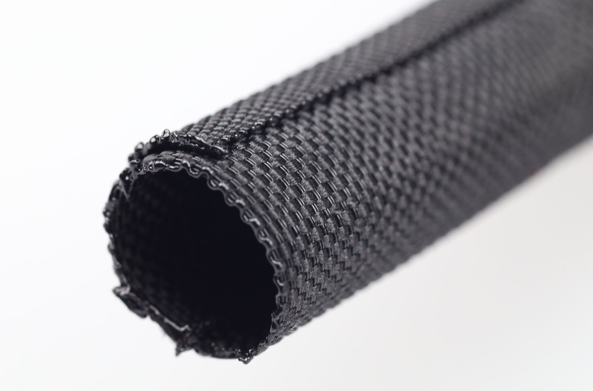 難燃性・耐UV性に優れ、摩耗に強い、配線・ホース・ワイヤー保護材。ポリエステルの繊維とPET繊維で作られたスリーブ付きチューブです。柔軟材質にて作られているスリーブはノイズ吸収および耐震性にも優れています。取り外しも簡単な為、コルゲートチューブの代替品としても使用が可能です。
