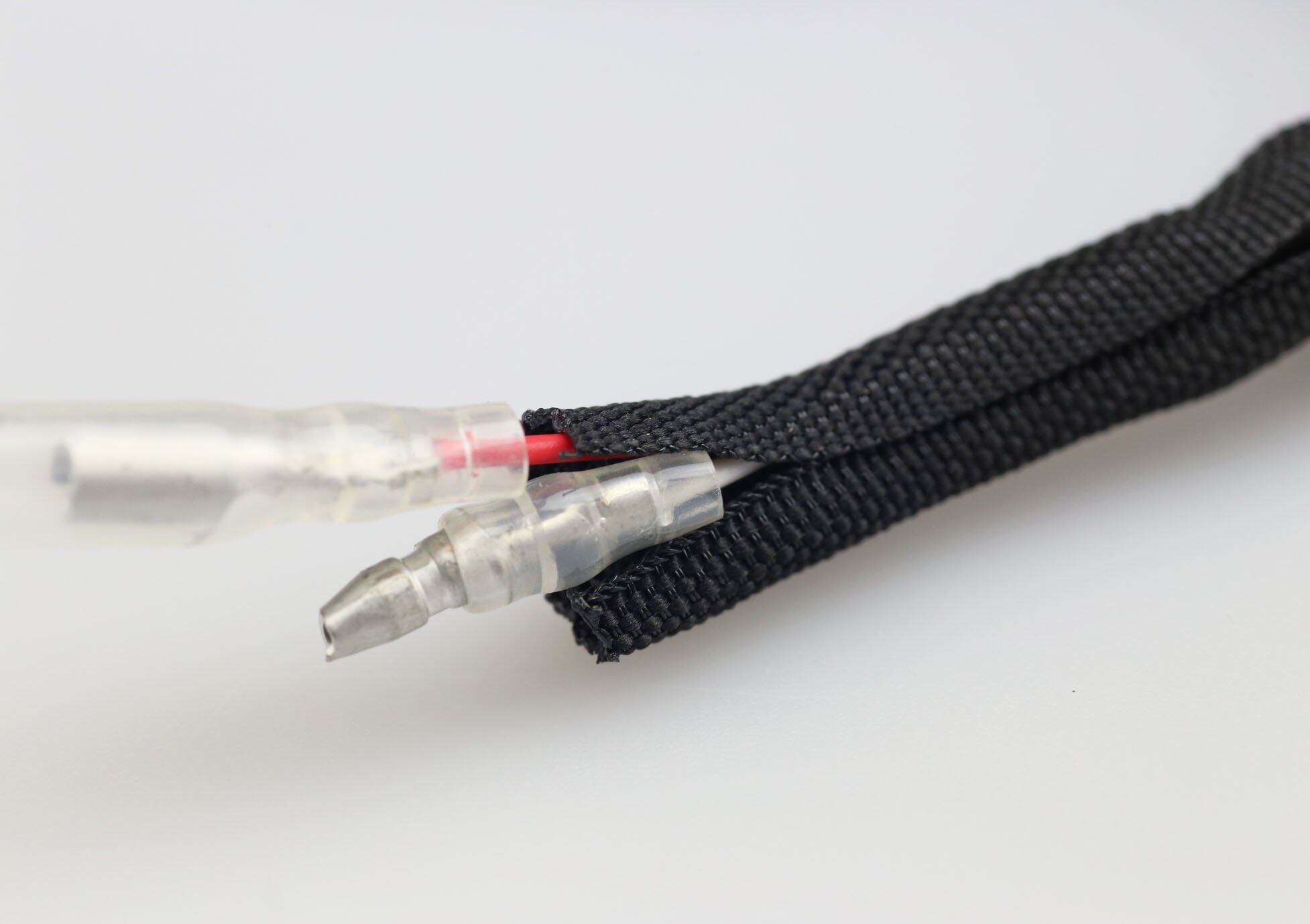 ポリエステルの繊維とPET繊維で作られたセルフラップスリーブです。柔軟材質にて作られているスリーブはノイズ吸収および耐震性に優れます。