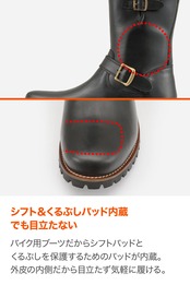 【仕様】シフトパッド内蔵 / くるぶしパッド / すべり止め加工 / ファスナーカバー / サイドジップ / 裏地付き