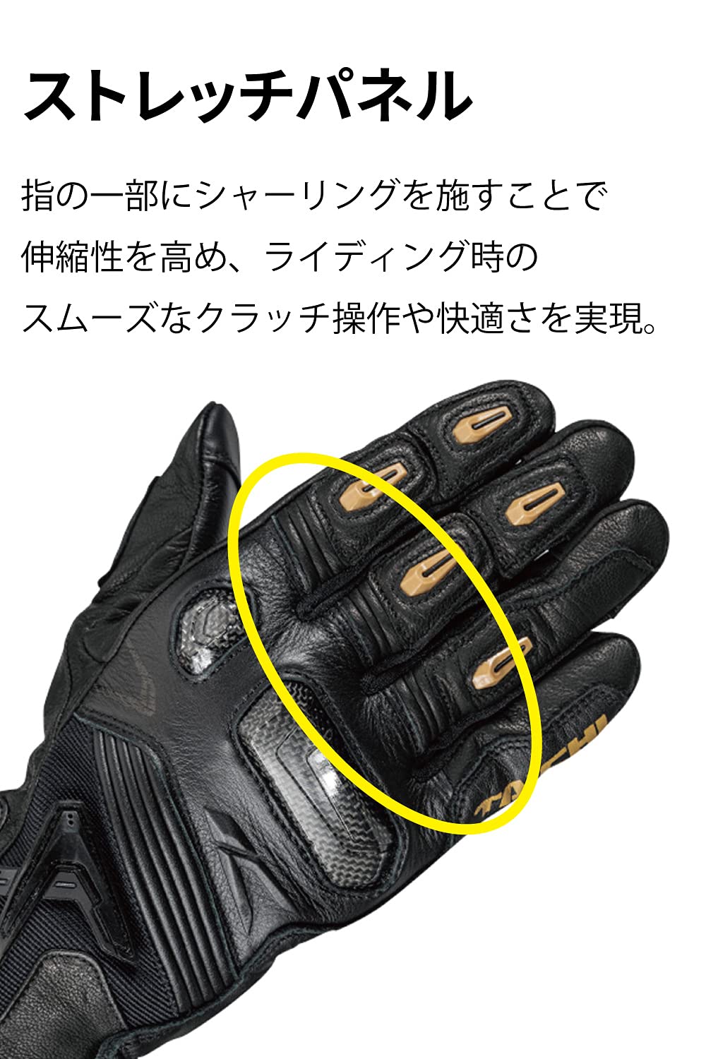 レーシンググローブを思わせるスポーティなデザインで幅広いシーズンでの使用に対応するノンベンテッドレザーグローブ。甲だけでなく、掌、カフ部にもカーボンプロテクターを採用し、手首周りの安全性を高めるミドルカフグローブです。スマホタッチ採用で高い利便性も実現しました。