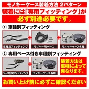 ※本品取付けの際は、車種別フィッティングおよびモノキーベースが別途必要となります。 ※防水性を考慮した設計ですが、完全防水ではありません。 ※金属製のケースのため、収納物が傷つく恐れがございます。 ※別売のフィッティングの積載制限以上は積載しないでください。