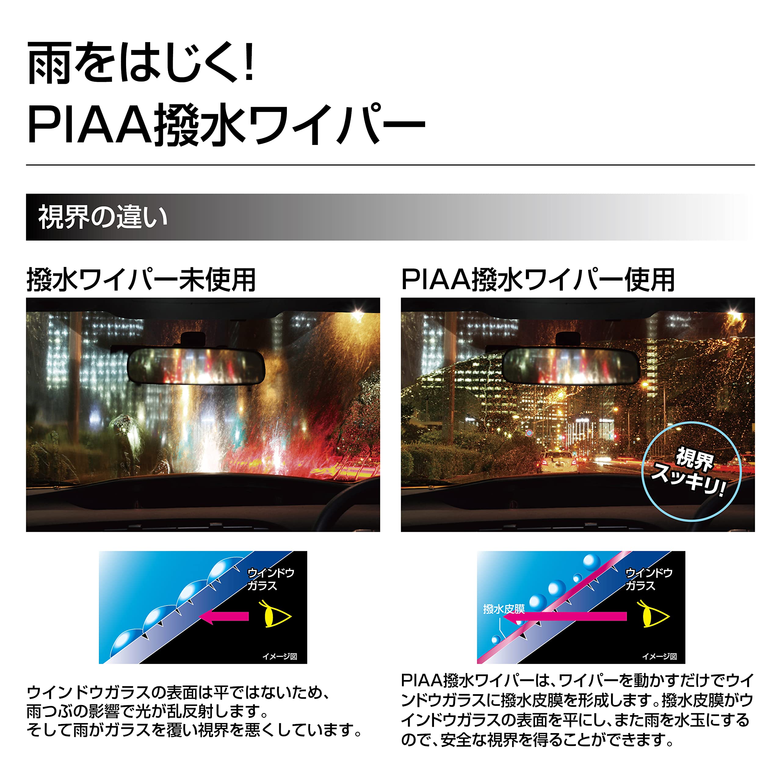 PIAA ワイパー ブレード 雨用[替えゴム] ― エクセルコートシリーズ:ワイパーを動かすだけで撥水被膜を形成してくれる撥水ワイパー替えゴム