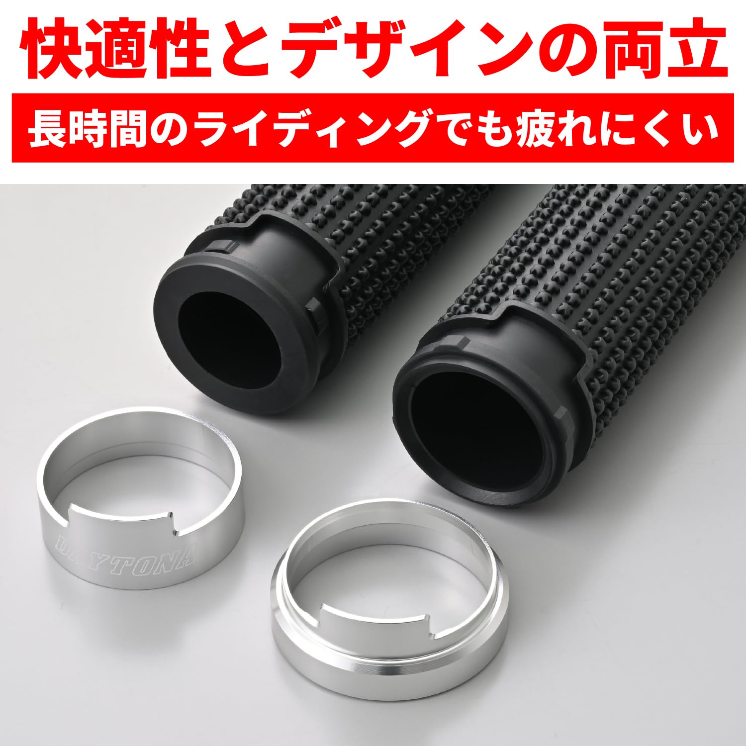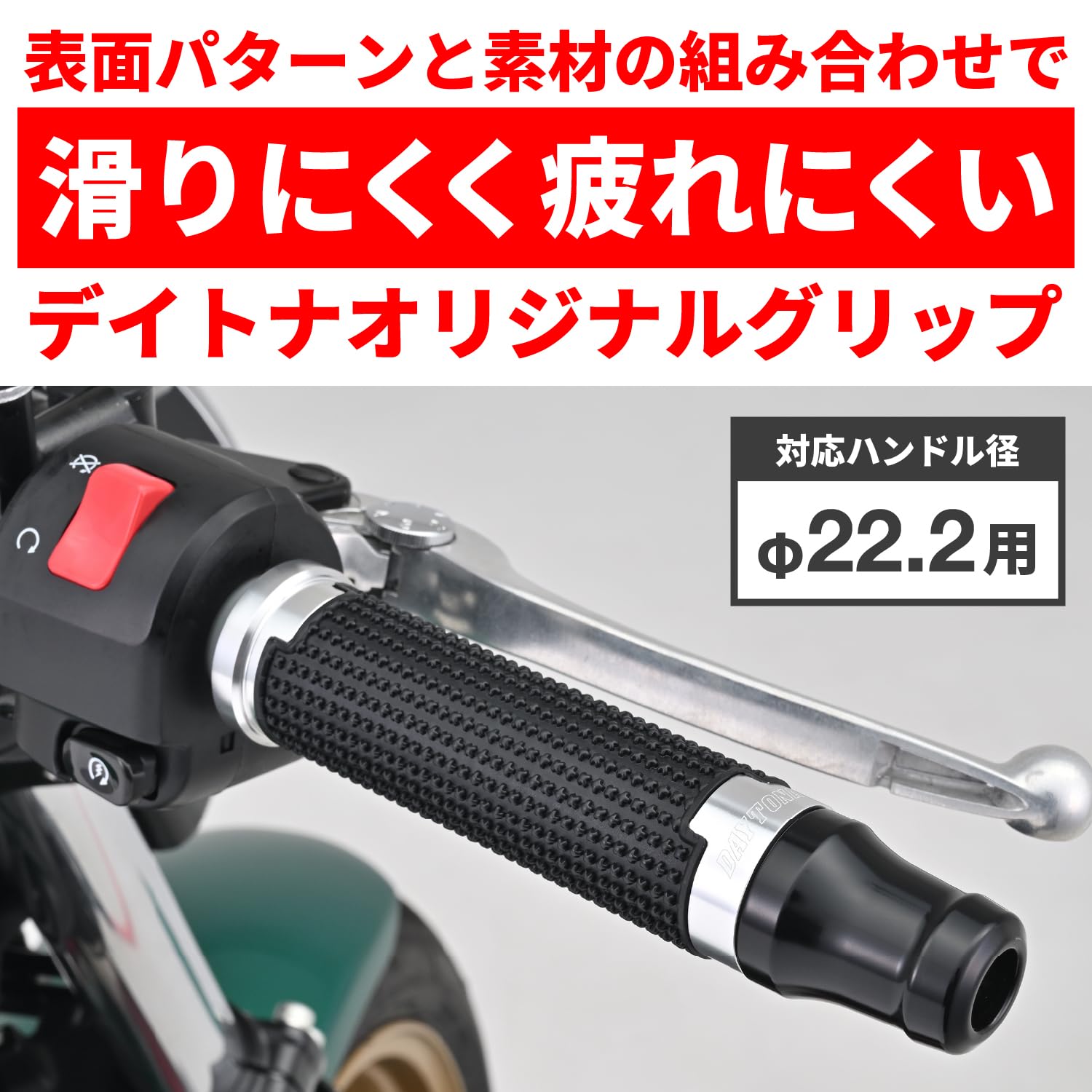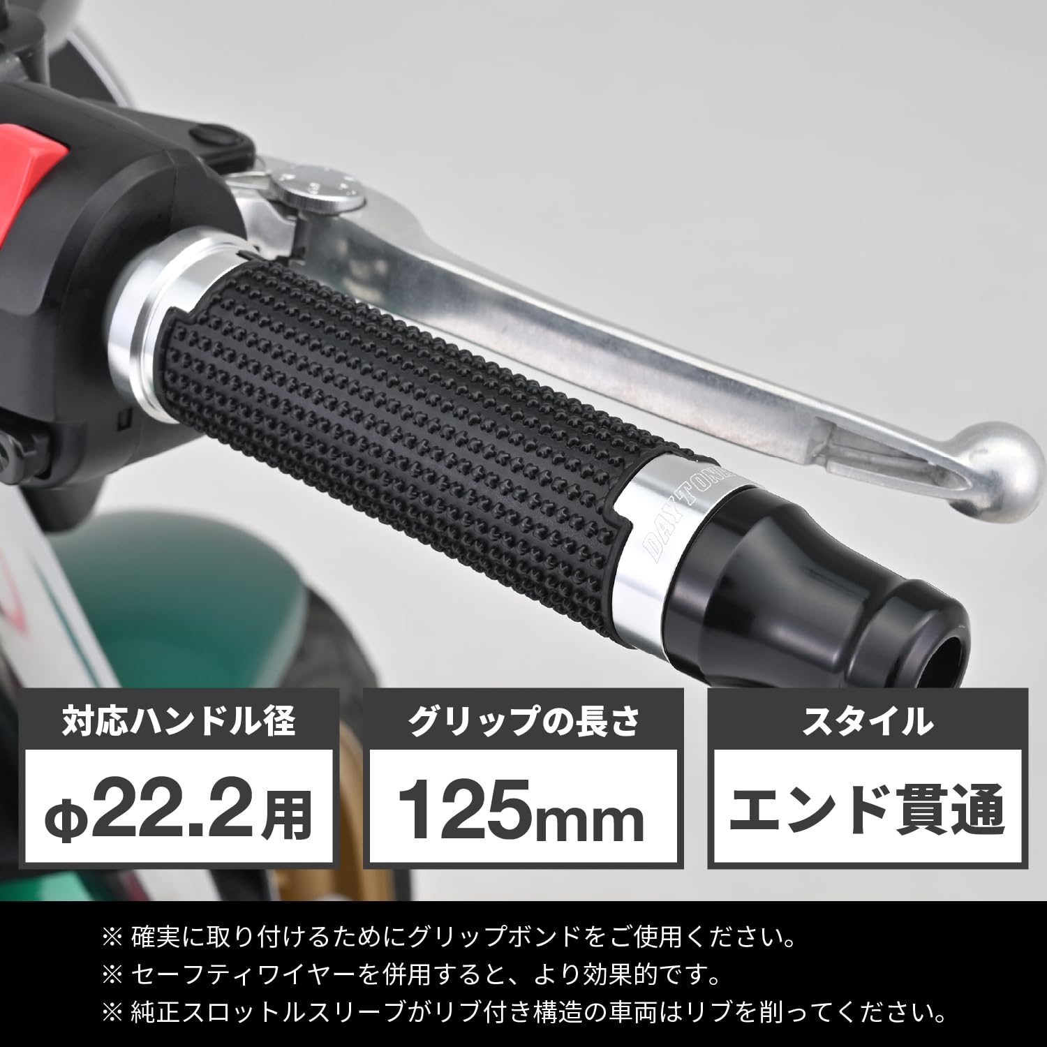 デイトナ(Daytona) グリッピーグリップ バイク用 グリップ ハンドル径φ22.2用 125mm エンド貫通 アルミリング