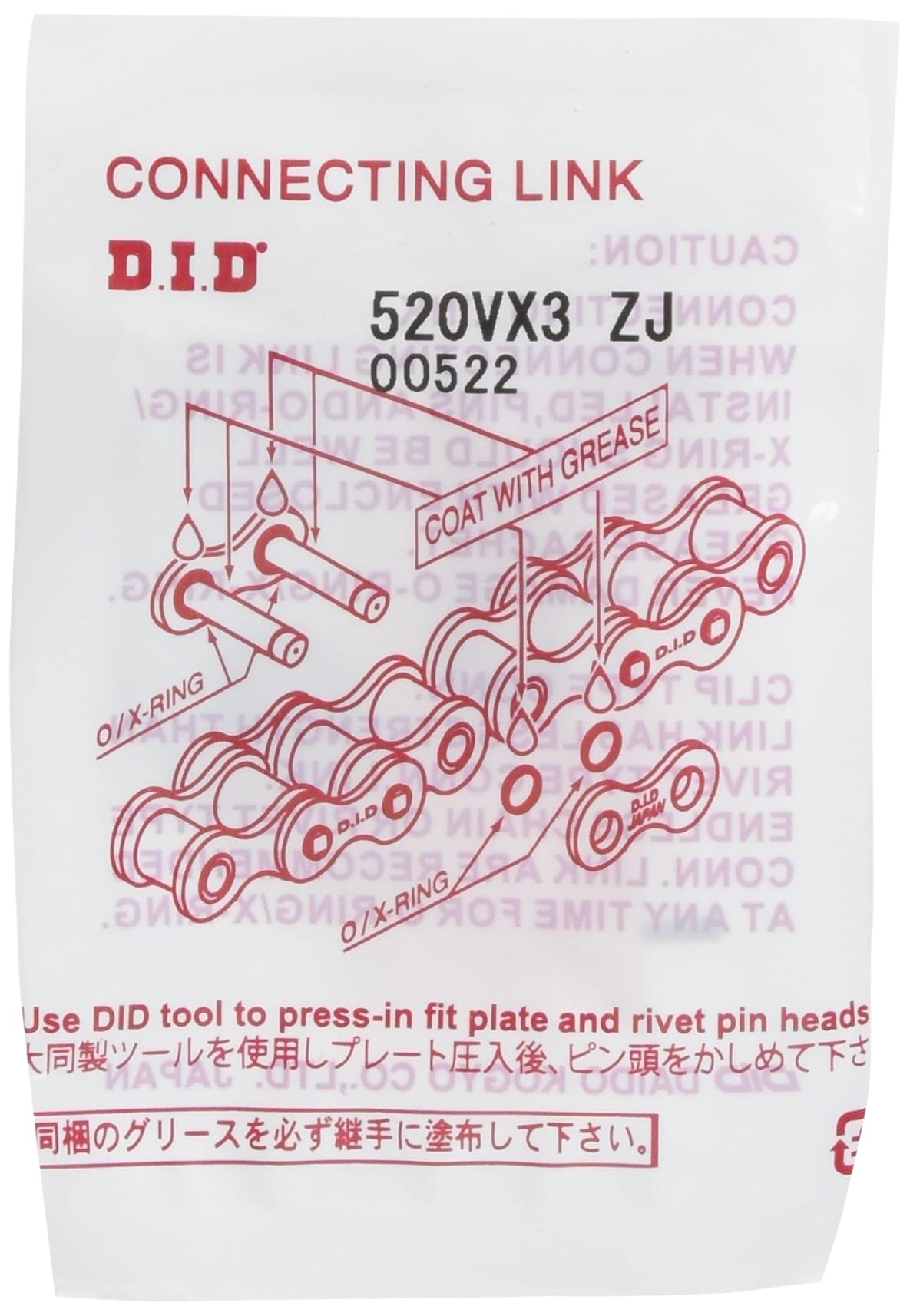 ドライブチェーンはサイズが同じでも品番が異なると互換性は有りません。ジョイントは必ず同じ品番のものをご使用ください。