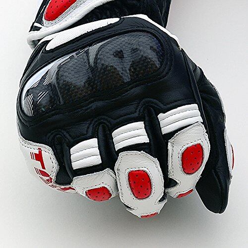 甲部に配置されたカーボンプロテクターはフローティング構造とし安全性と操作性を両立。 ストリートからサーキットまで幅広く使えるスタンダードレーシンググローブ。 ・ベンテッドホール(指股)・シャーリング(指・甲)