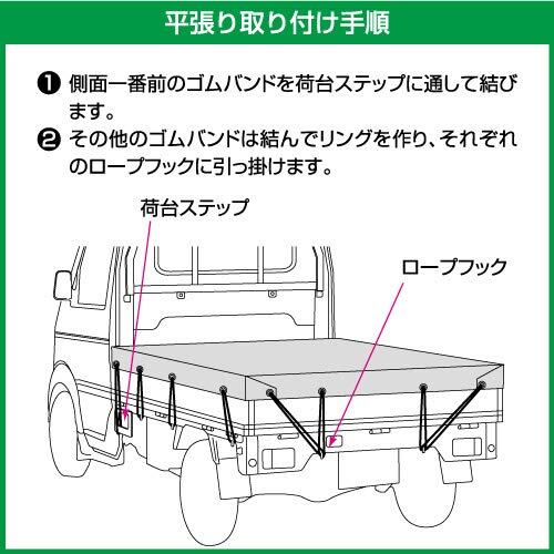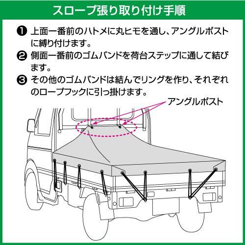 平張り・スロープ張りの両用が可能、しっかり張れる補強加工済み、軽トラック用荷台シート。