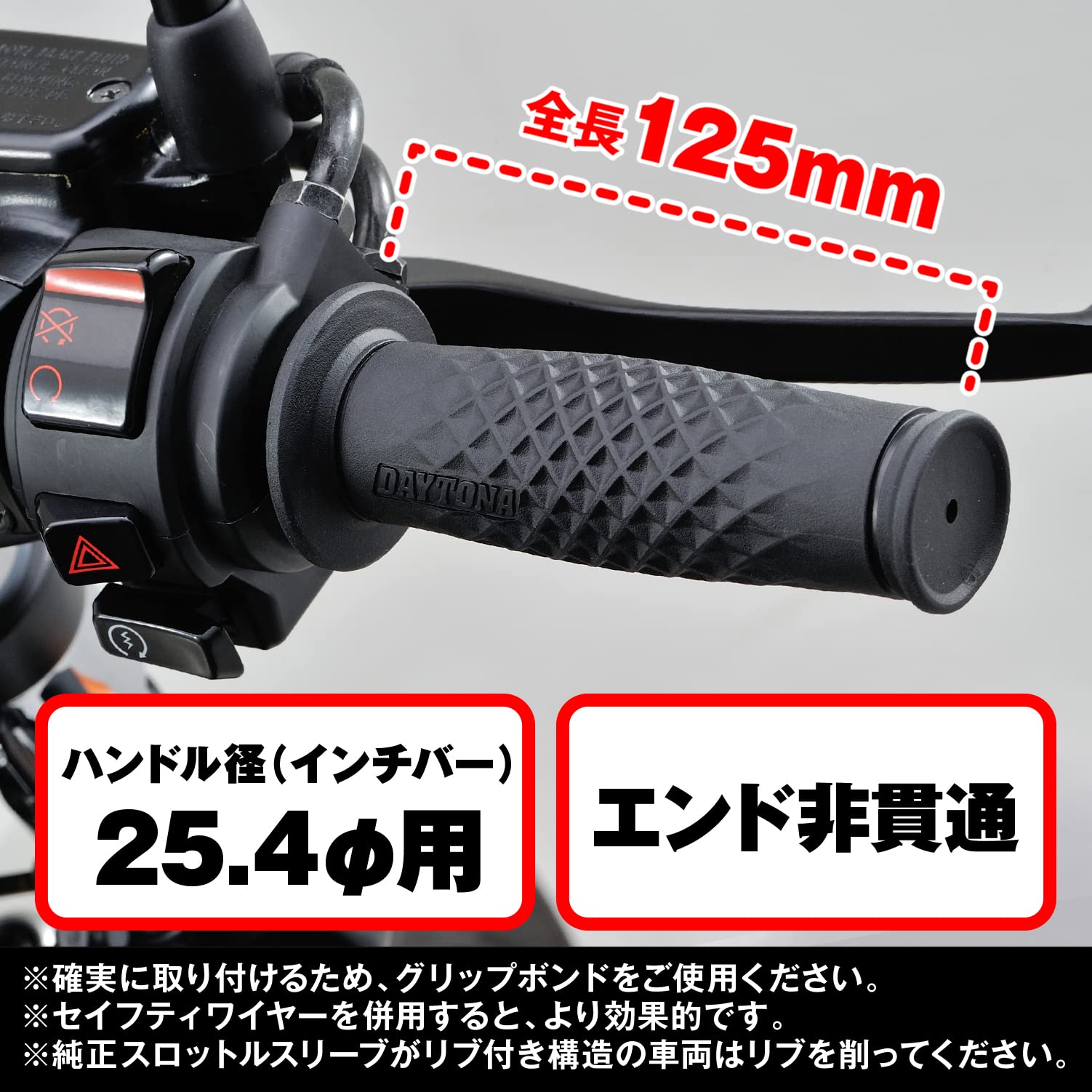 デイトナ(Daytona) グリッピーグリップ バイク用 グリップ ハンドル径Φ25.4(インチバー)用 125mm エンド非貫通 GG-DI-ARC-3 ブラック 98457