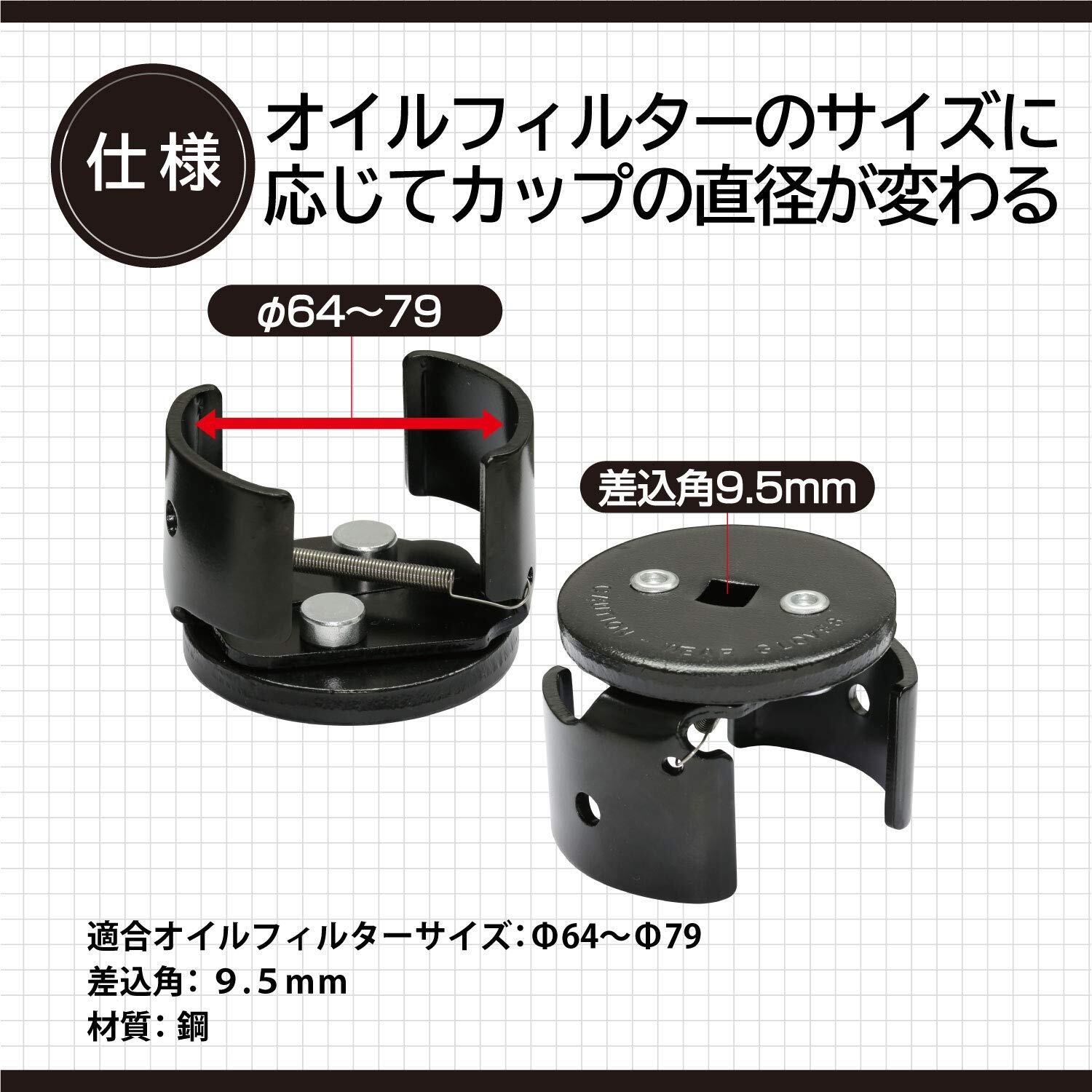 適合オイルフィルターサイズ:64~79φ