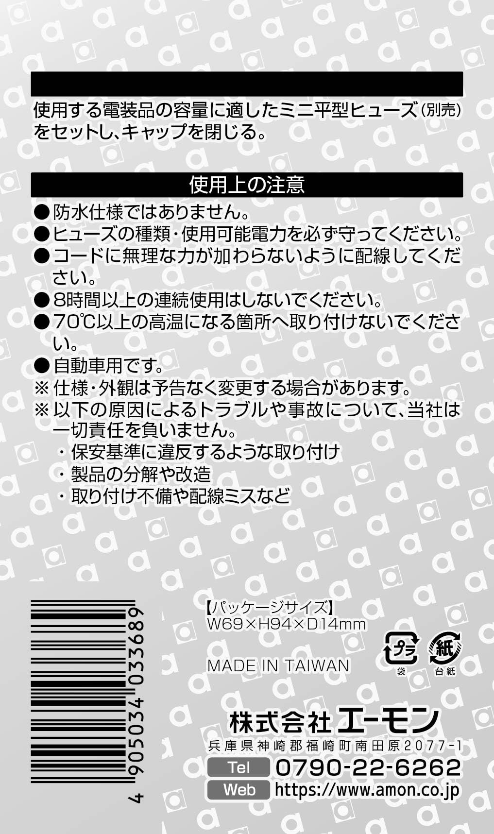 エーモン(amon) ミニ平型ヒューズホルダー DC12V・360W/DC24V・720W 30A(MAX) 3368
